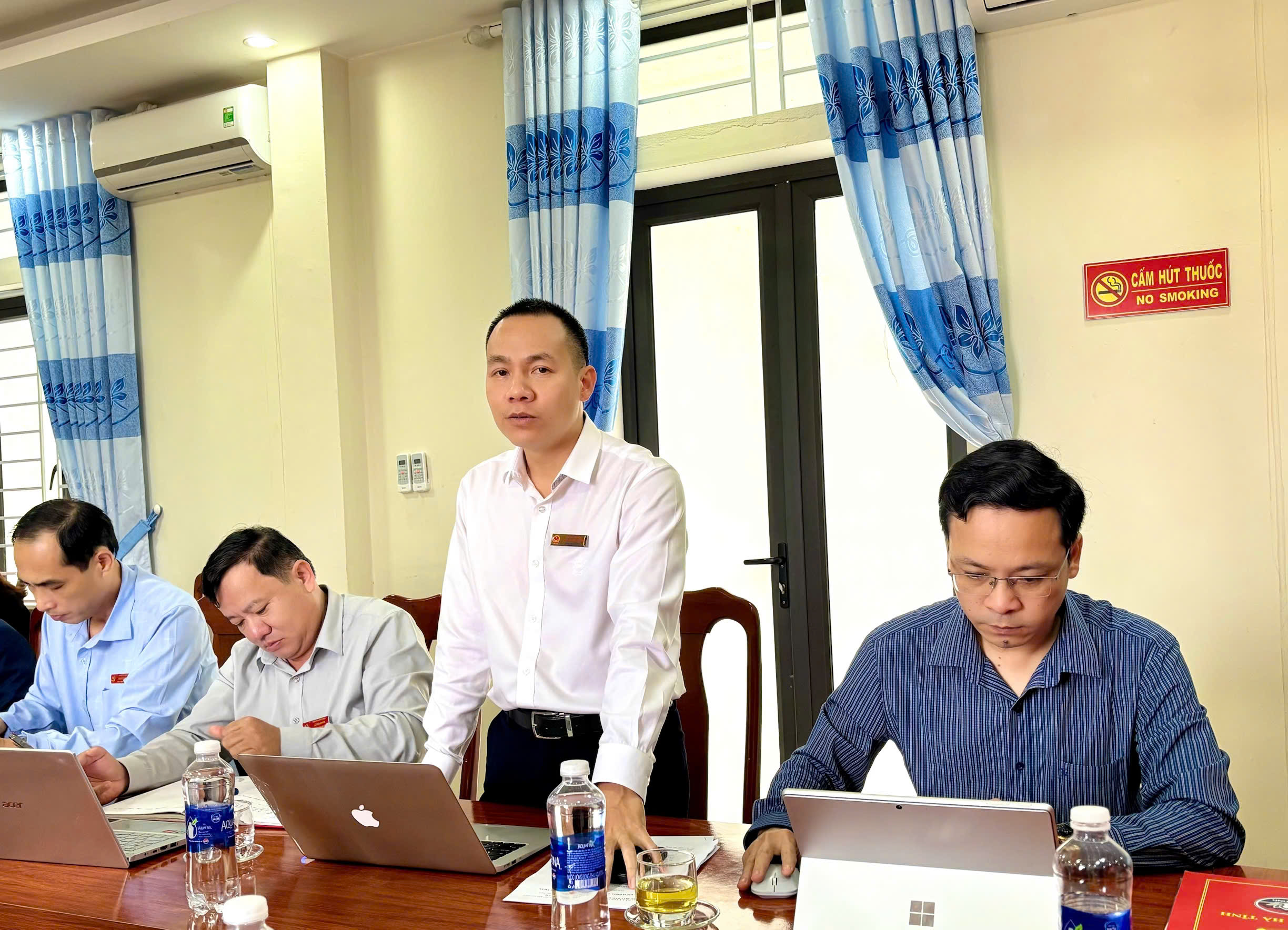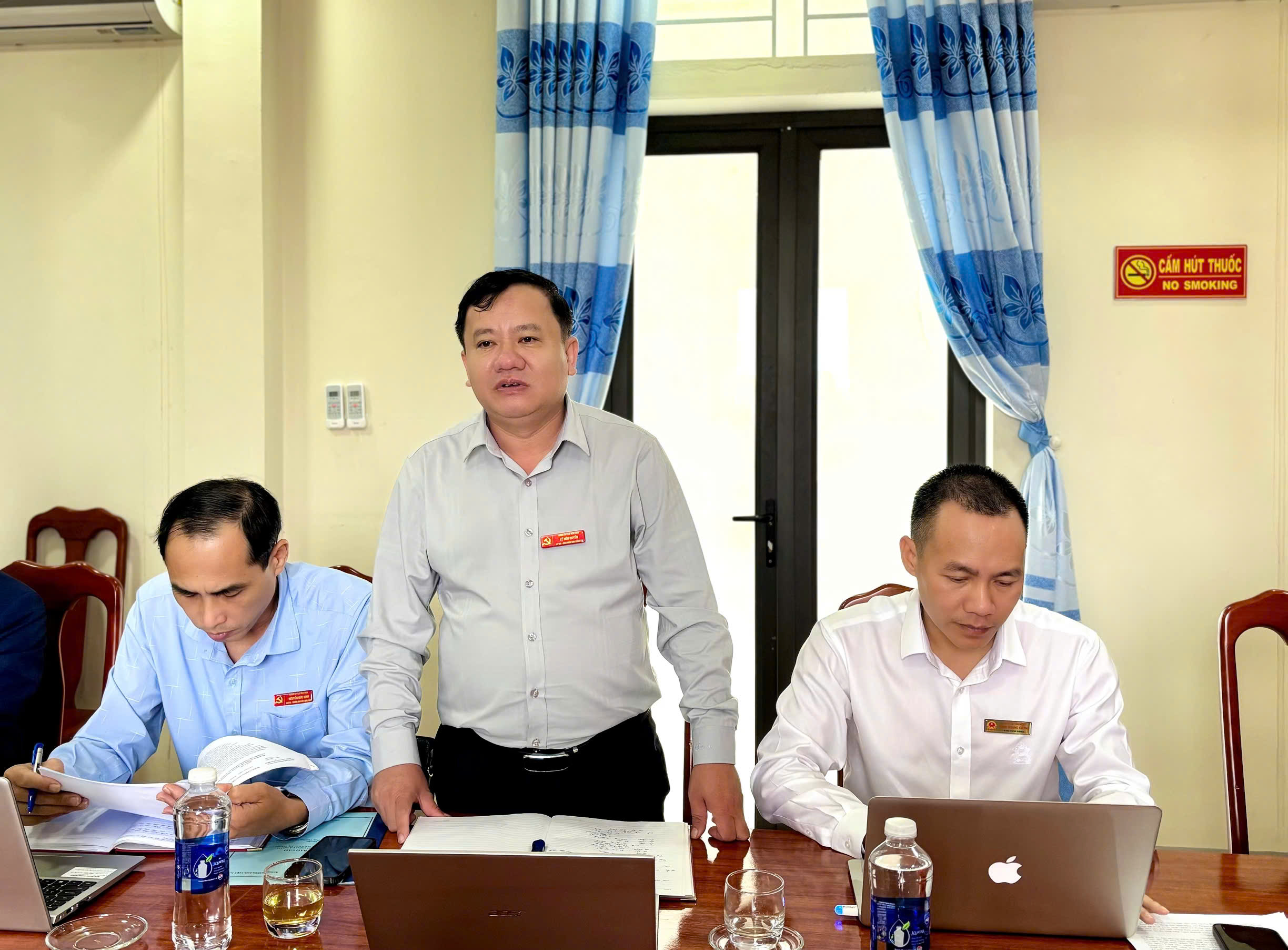 Đồng chí Lê Hữu Quyền - Ủy viên BTV Đảng ủy, Chủ nhiệm Ủy ban Kiểm tra Đảng ủy phát biểu tại hội nghị