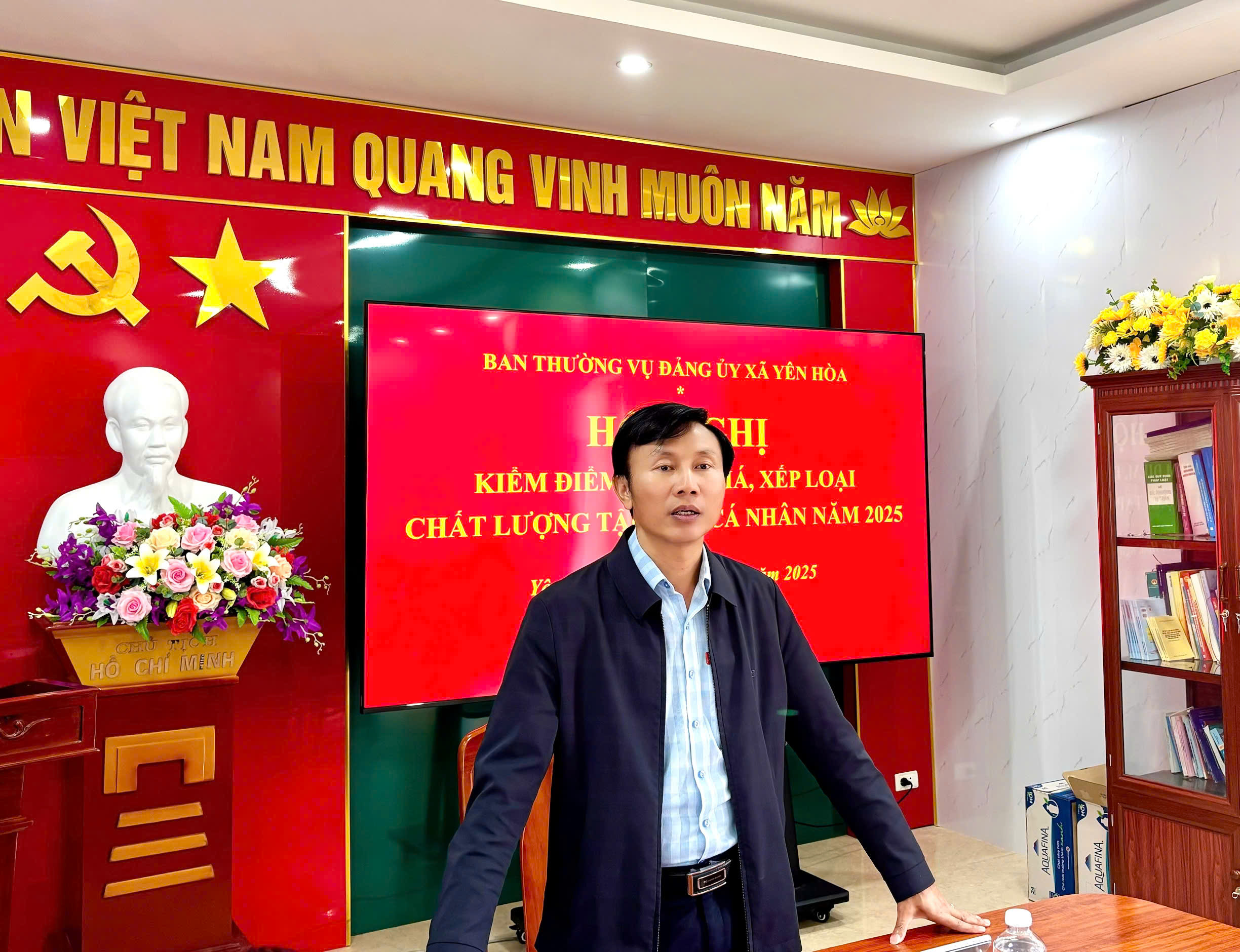 Sáng ngày 10/12/2025, dưới sự chủ trì của đồng chí Trần Đình Hải - Bí thư Đảng ủy, Chủ tịch HĐND xã, Ban Thường vụ Đảng ủy xã Yên Hòa, tỉnh Hà Tĩnh đã tổ chức hội nghị kiểm điểm, đánh giá, xếp loại chất lượng tập thể và cá nhân năm 2025.
