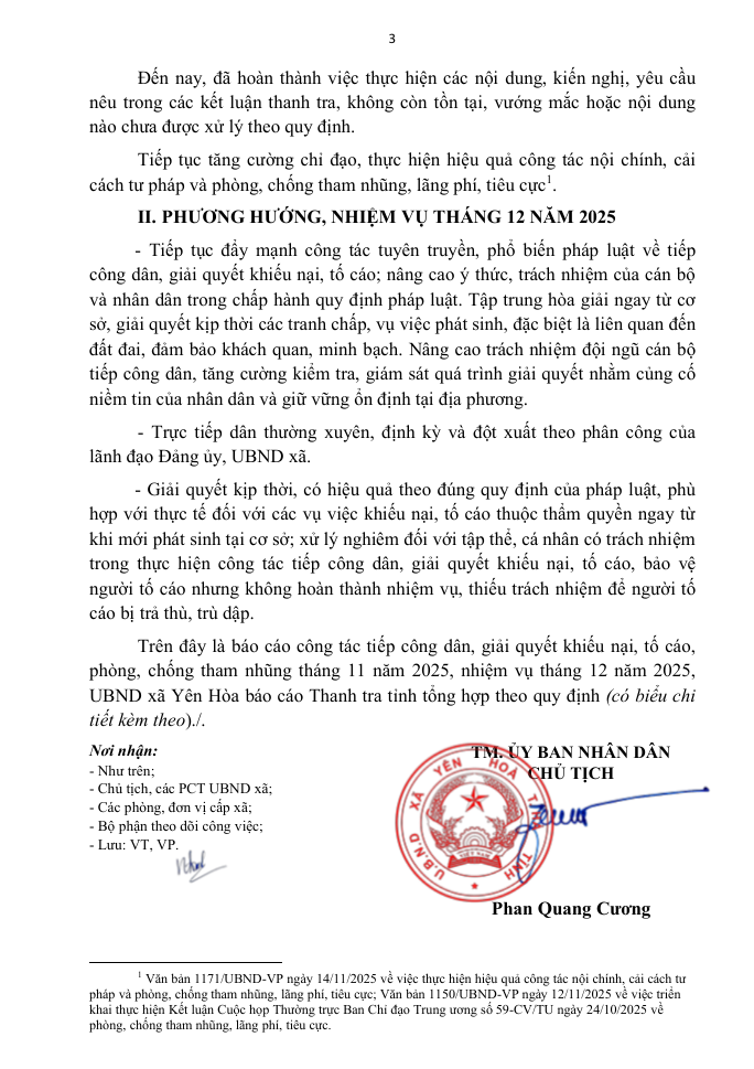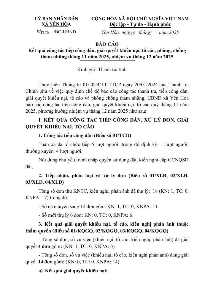 Báo cáo kết quả công tác tiếp công dân, giải quyết khiếu nại, tố cáo, phòng, chống tham nhũng tháng 11 năm 2025, nhiệm vụ tháng 12 năm 2025Văn phòng HDND-UBND17/11/2025A -A+Văn phòng HDND-UBND17/11/2025A -A+