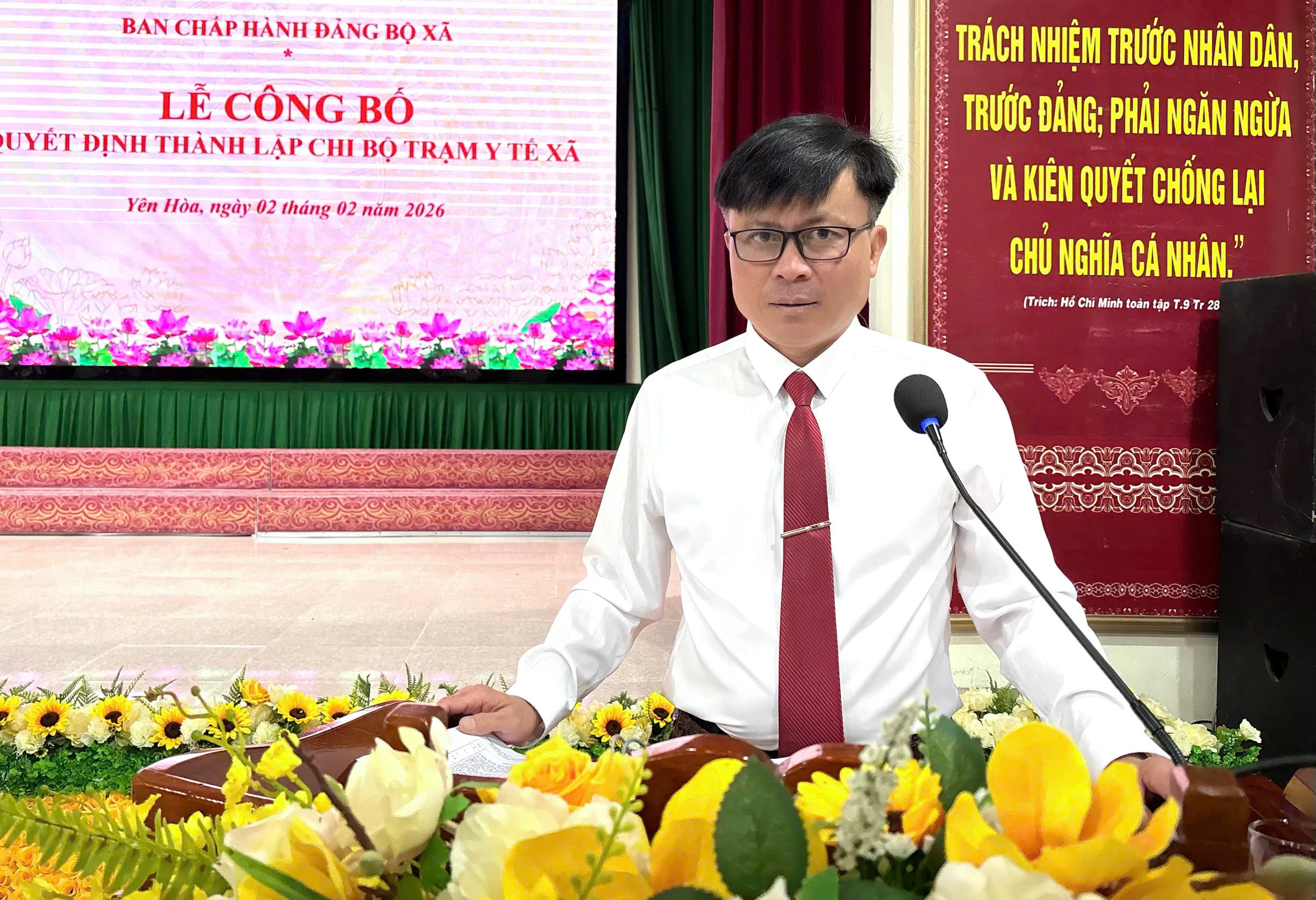 Tại buổi lễ đồng chí Nguyễn Đức Vinh – Ủy viên BTV Đảng ủy, Trưởng Ban xây dựng Đảng đã công bố Quyết định thành lập Chi bộ Trạm Y tế xã Yên Hòa (chi bộ có 16 đảng viên) và Quyết định chỉ định Ban Chấp hành lâm thời gồm 3 đồng chí. Đồng chí Nguyễn Cẩm Thạch – Phụ trách Trạm Y tế xã giữ chức Bí thư Chi bộ lâm thời nhiệm kỳ 2025 – 2030.