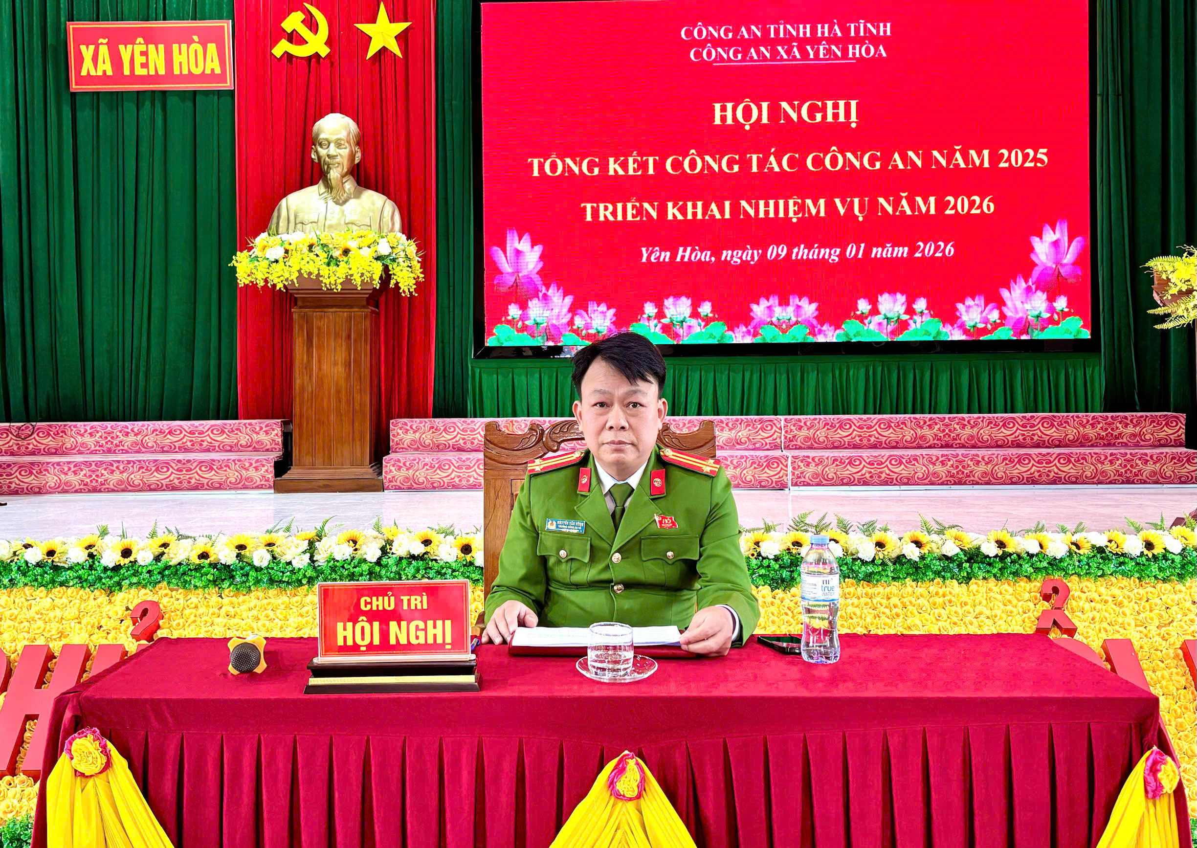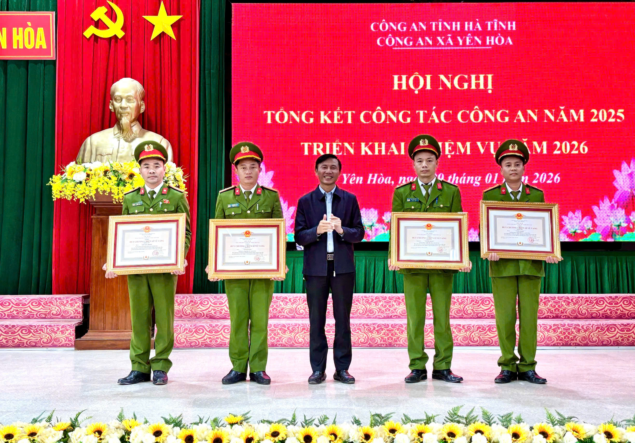 Chiều ngày 09/01/2026, công an xã Yên Hòa, tỉnh Hà Tĩnh tổ chức tổng kết công tác công an và phong trào thi đua “vì an ninh tổ quốc” năm 2025, triển khai nhiệm vụ năm 2026. Tham dự hội nghị có đồng chí Trần Đình Hải - Bí thư Đảng ủy, Chủ tịch HĐND xã; đồng chí Hoàng Văn Linh - Ủy viên BTV, Phó Chủ tịch UBND xã; Lãnh đạo Đồn Biên phòng Thiên Cầm, Ban Chỉ huy Quân sự xã, các phòng, ngành cấp xã; cán bộ, chiến sỹ Công an xã và Tổ trưởng các Tổ ANTT ở các thôn cùng dự.