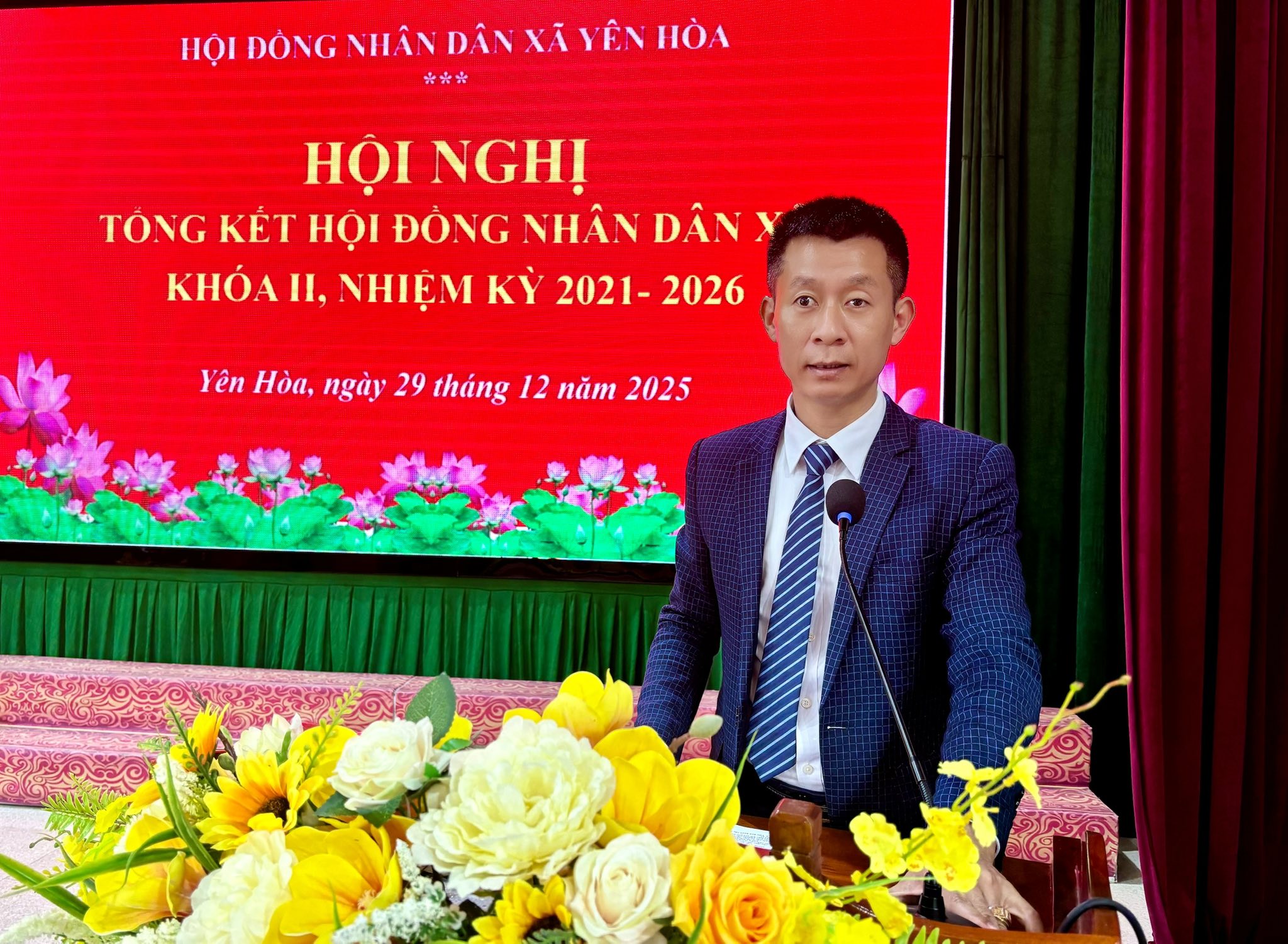 Chiều ngày 29/12/2025, HĐND xã Yên Hòa, tỉnh Hà Tĩnh tổ chức tổng kết hoạt động nhiệm kỳ 2021 – 2026. Tham dự hội nghị có các đồng chí Thường trực Đảng ủy; các đồng chí trong BTV Đảng ủy, BCH Đảng bộ xã; Thường trực HĐND, lãnh đạo UBND, Ủy ban MTTQ và các tổ chức chính trị - xã hội; các đồng chí đại biểu HĐND xã; Lãnh đạo các phòng, ban, ngành, cơ quan, đơn vị và các đồng chí Bí thư, Thôn trưởng các thôn cùng dự.
