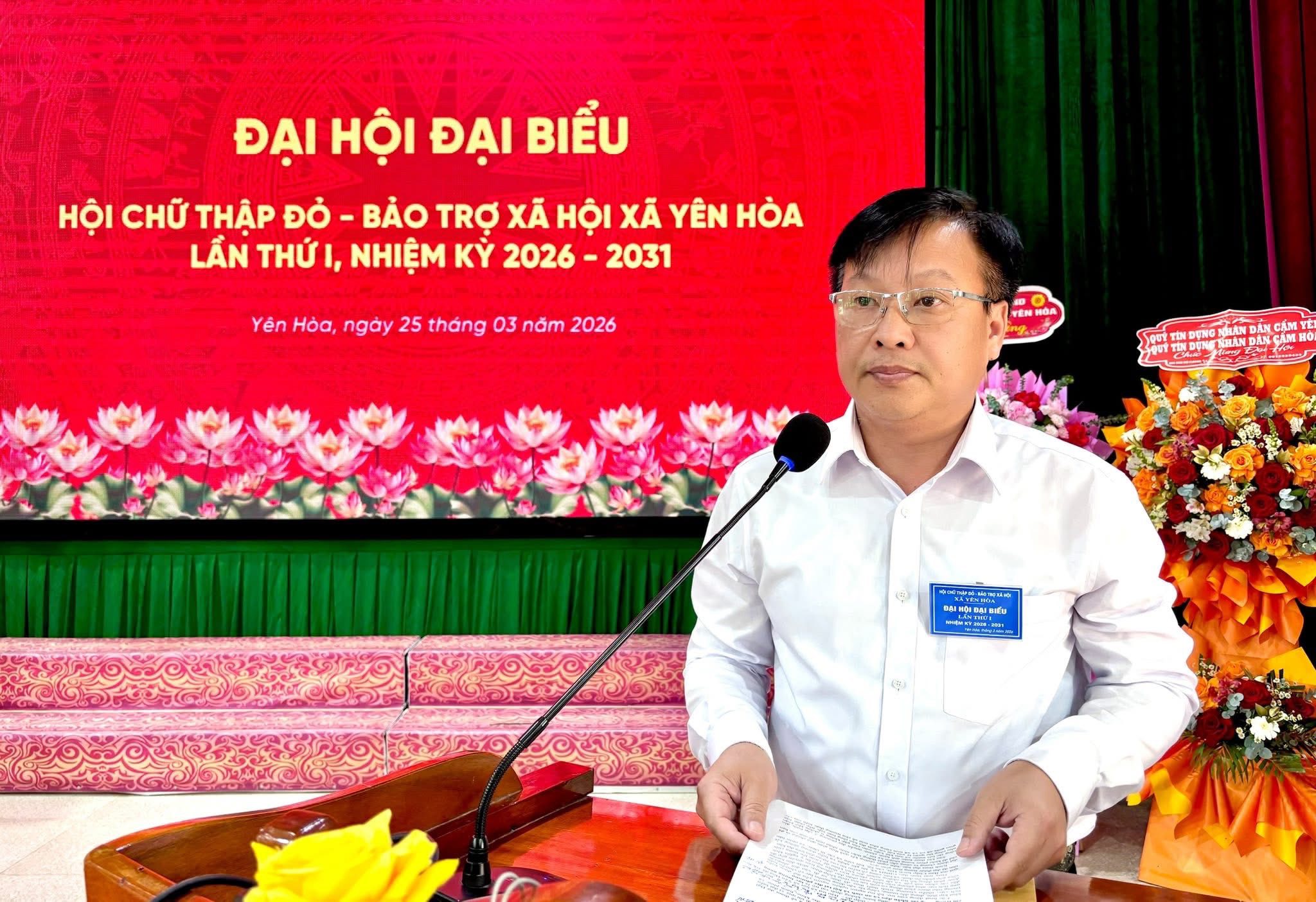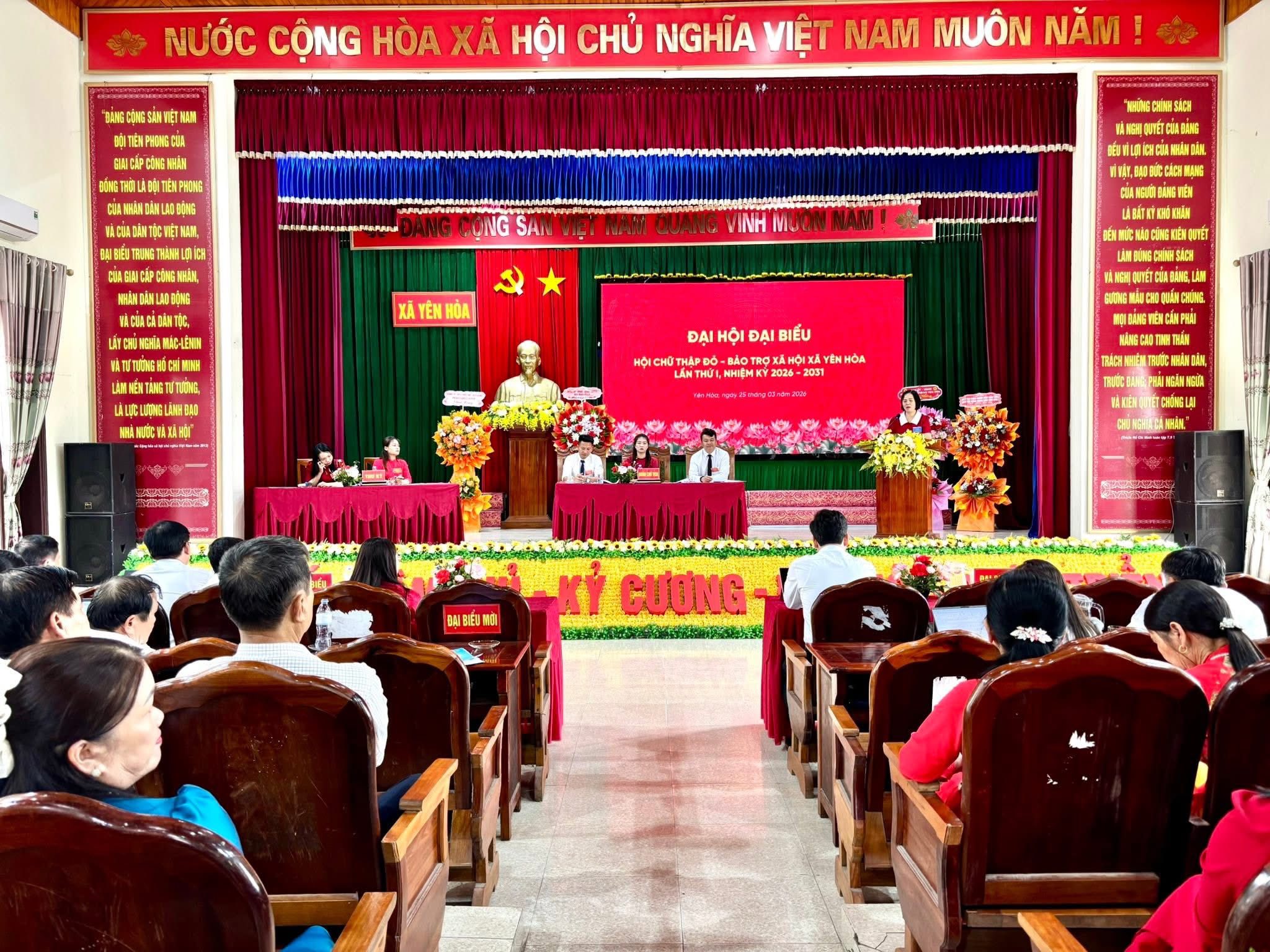 Sáng ngày 24/3/2026, Hội Chữ thập đỏ - Bảo trợ xã hội xã Yên Hòa, tỉnh Hà Tĩnh long trọng tổ chức Đại hội đại biểu lần thứ nhất, nhiệm kỳ 2026 – 2031. Về tham dự đại hội có đồng chí Lê Thị Mai Hoa - Ủy viên BCH Trung ương hội Chữ thập đỏ, Chủ tịch Hội Chữ thập đỏ tỉnh; đại diện Hội bảo trợ người khuyết tật và trẻ mồ côi tỉnh; ông Phan Hồng Phong - Phó chủ tịch Hội đồng hương tỉnh Hà Tĩnh, Chủ tịch HĐH Cẩm Xuyên khu vực phía Nam; đại diện Hội đồng hương xã Yên Hòa khu vực phía Nam. Phía xã có đồng chí Trần Quang Trung – Phó Bí thư Thường trực Đảng ủy; các đồng chí trong BTV Đảng ủy, BCH Đảng bộ xã; Lãnh đạo UBND, Ủy ban MTTQ và các đoàn thể; đại diện các phòng, ban, nghành cùng 59 đại biểu chính thức tham dự đại hội.
