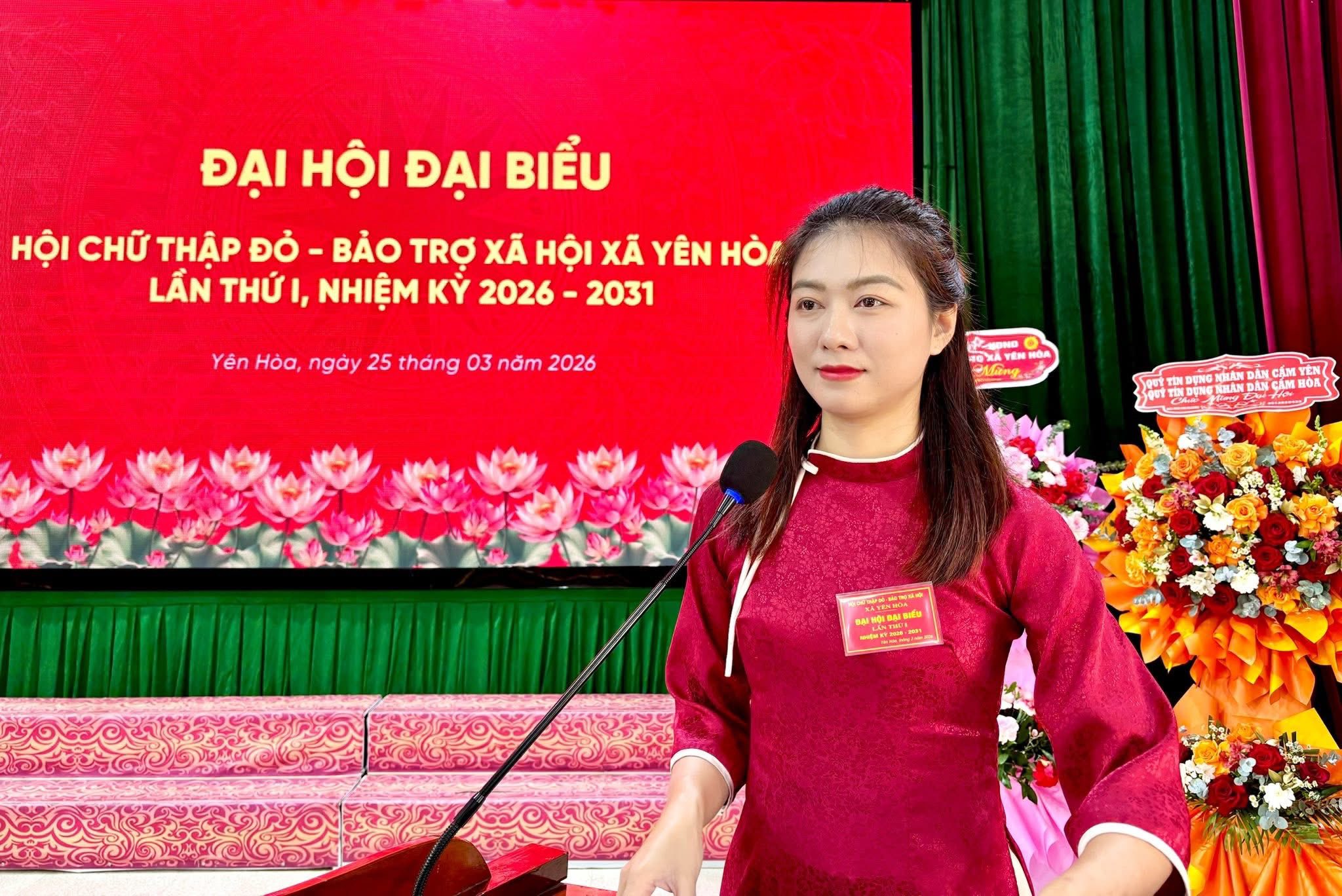 Với tinh thần dân chủ, trách nhiệm và thống nhất cao Đại hội đã bầu 25 đồng chí vào Ban Chấp hành. Đồng chí Trần Thị Mai Thanh được bầu giữ chức Chủ tịch Hội Chữ thập đỏ - Bảo trợ xã hội xã Yên Hòa, nhiệm kỳ 2026 – 2031. Đại hội cử 02 đồng chí tham dự Đại hội đại biểu Hội Chữ thập đỏ - Bảo trợ xã hội tỉnh trong thời gian tới./.