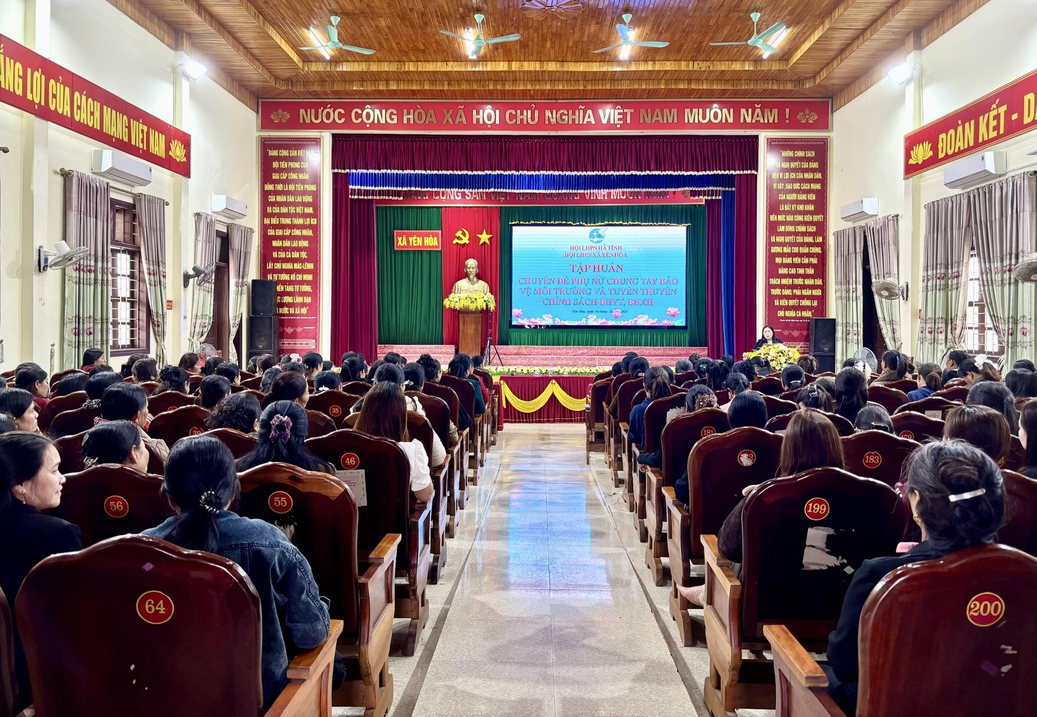 Chiều ngày 21/12/2025, Hội LHPN xã Yên Hoà tổ chức hội nghị tập huấn chuyên đề “Phụ nữ chung tay bảo vệ môi trường và tuyên truyền chính sách BHYT, BHXH”.