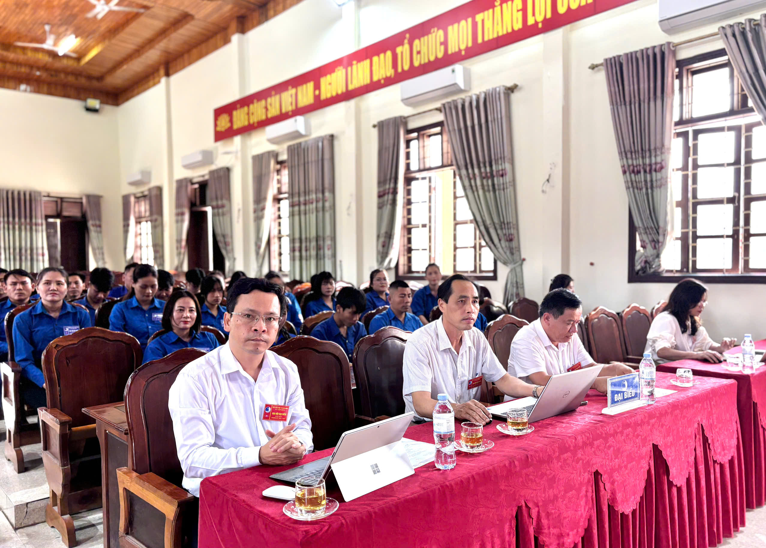 Tham dự có đồng chí Trần Quang Trung – Phó Bí thư Thường trực Đảng ủy; các đồng chí trong BTV Đảng ủy; Lãnh đạo UBND xã; Trưởng các phòng, ngành cùng 90 đại biểu chính thức tham dự Đại hội.