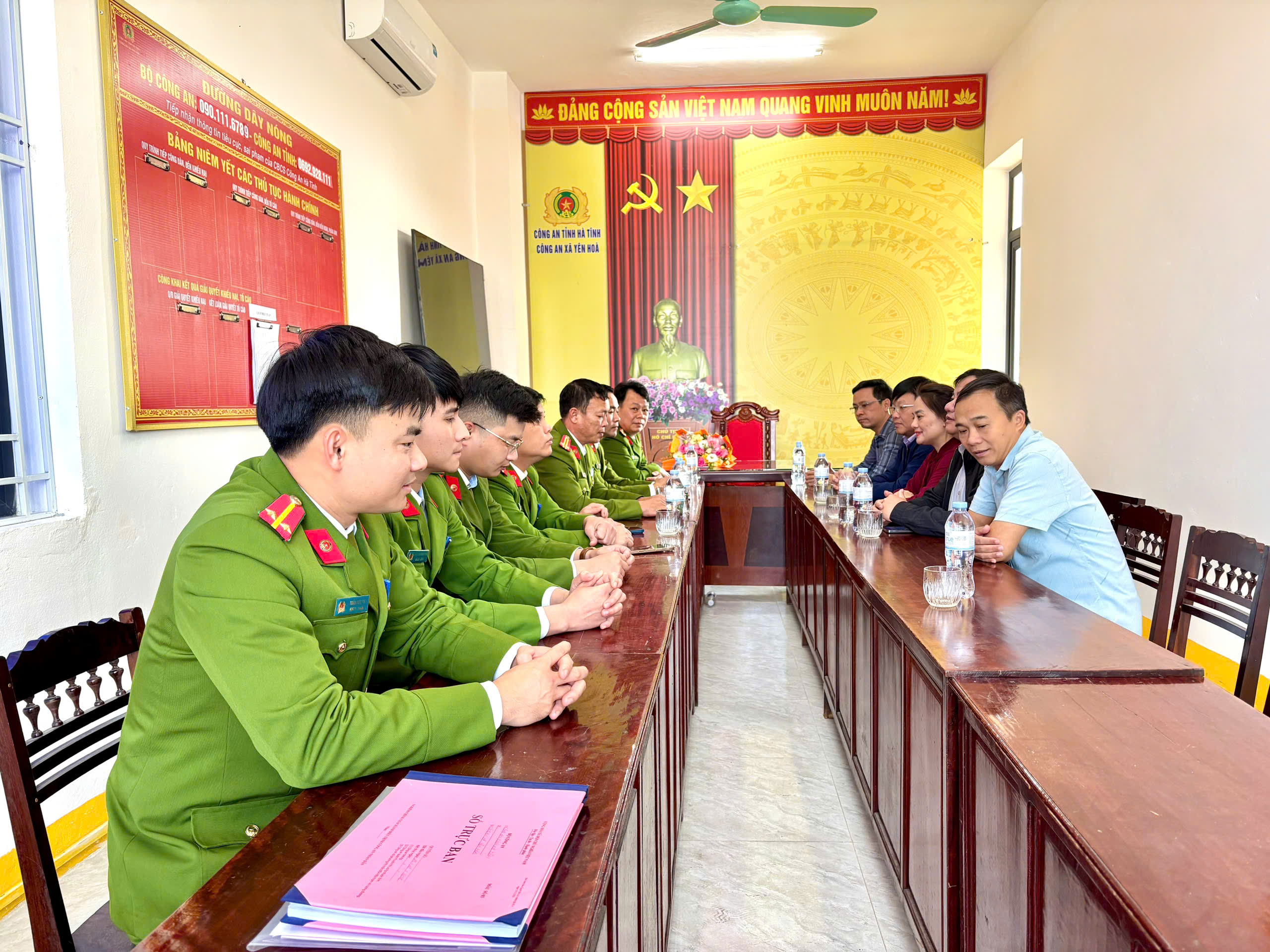Chiều ngày 13/1/2026, các đồng chí Lãnh đạo Đảng ủy, HĐND, UBND, Ủy ban MTTQ xã Yên Hòa, tỉnh Hà Tĩnh do đồng chí Trần Quang Trung - Phó Bí thư Thường trực Đảng ủy xã làm trưởng đoàn đã đến chúc mừng và biểu dương Công an xã về thành tích xuất sắc trong công tác đấu tranh, phòng chống tội phạm, bảo đảm an ninh trật tự trên địa bàn.