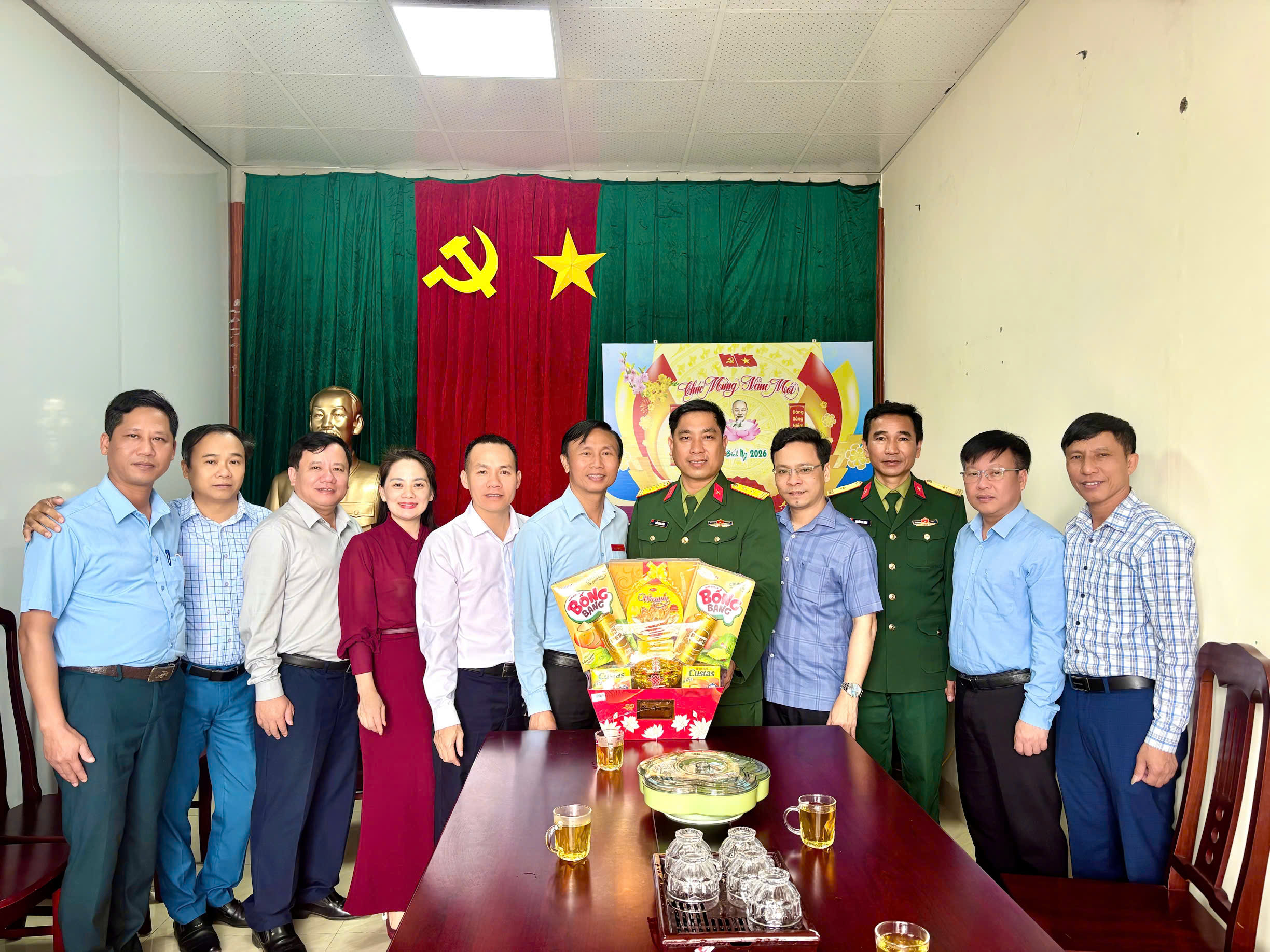 Nhân dịp này, lãnh đạo xã đã trao quà Tết và gửi lời chúc mừng năm mới an khang, thịnh vượng, sức khỏe, hạnh phúc tới toàn thể cán bộ, chiến sĩ, viên chức và nhân viên các đơn vị, chúc các đồng chí tiếp tục hoàn thành xuất sắc nhiệm vụ được giao.