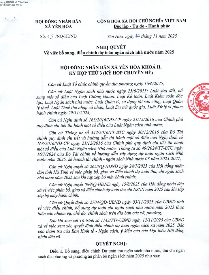 Nghị quyết về việc bổ sung, điều chỉnh dự toán ngân sách nhà nước 2025Ẩn danh14/11/2025A -A+Ẩn danh14/11/2025A -A+
