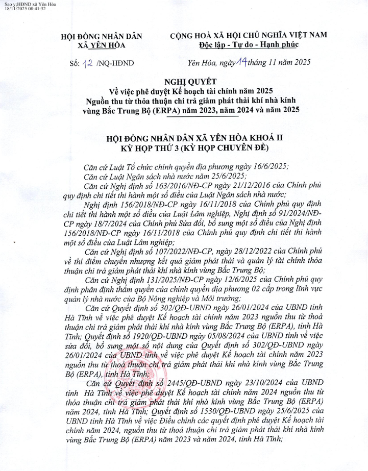 Nghị quyết về việc phê duyệt KH tài chính 2025 nguồn thu từ thỏa thuận chi trả giám phát thải khí nhà kính vùng Bắc Trung Bộ Ẩn danh14/11/2025A -A+Ẩn danh14/11/2025A -A+ File đính kèmNQ 12 HDND xã Vv phê duyệt KH tài chính 2025 nguồn thu từ thỏa thuận chi trả giám phát thải khí nhà kính vùng Bắc Trung Bộ.pdf