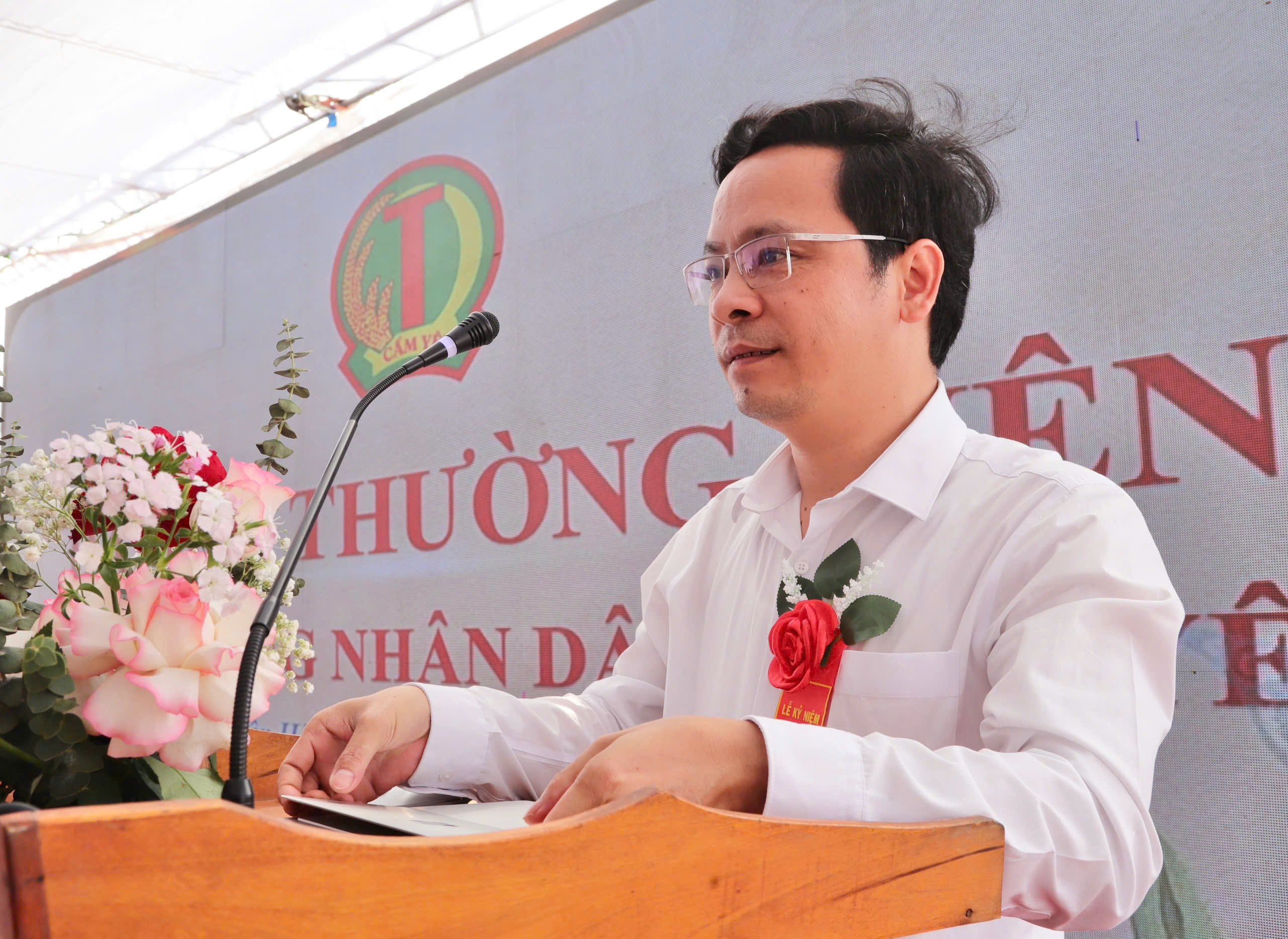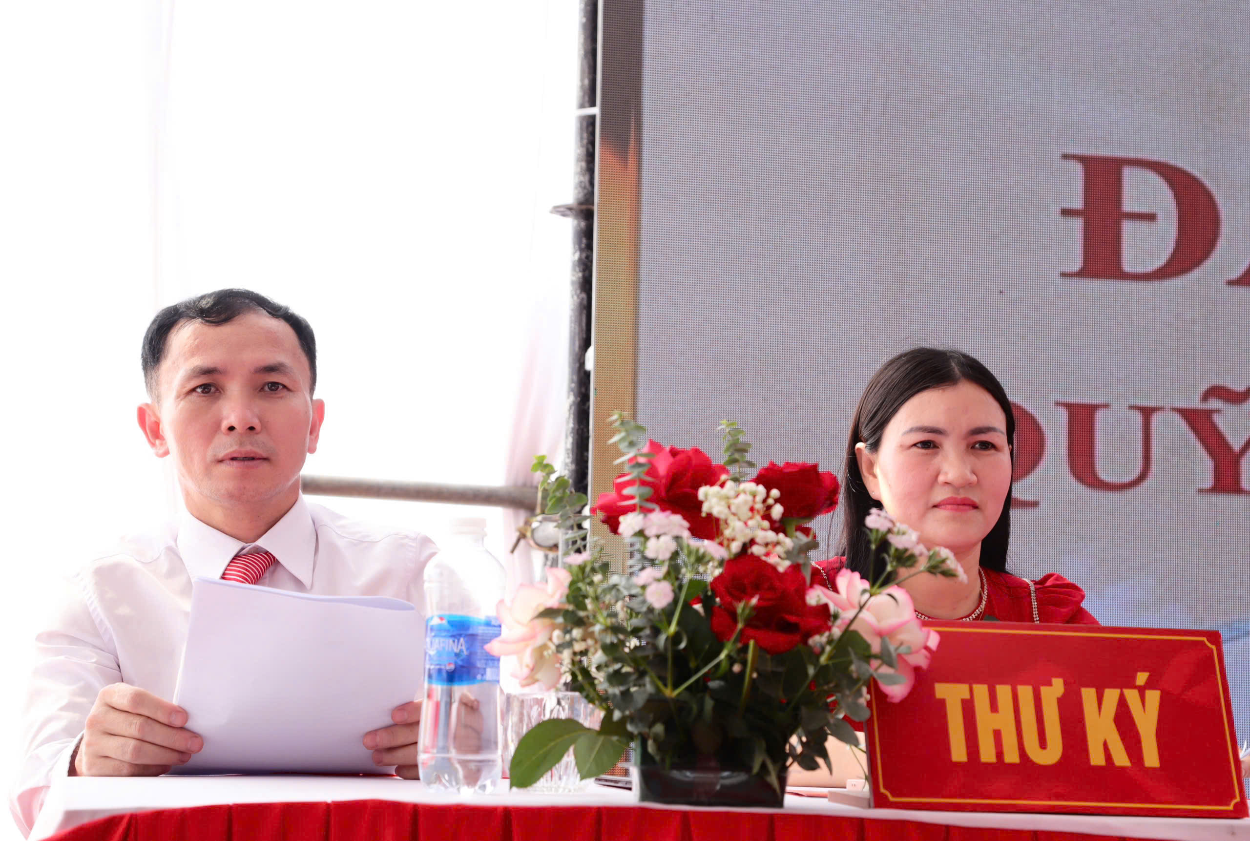 Đồng chí Trần Quang Trung - Phó Bí thư Thường trực Đảng uỷ xã phát biểu tại Đại hội