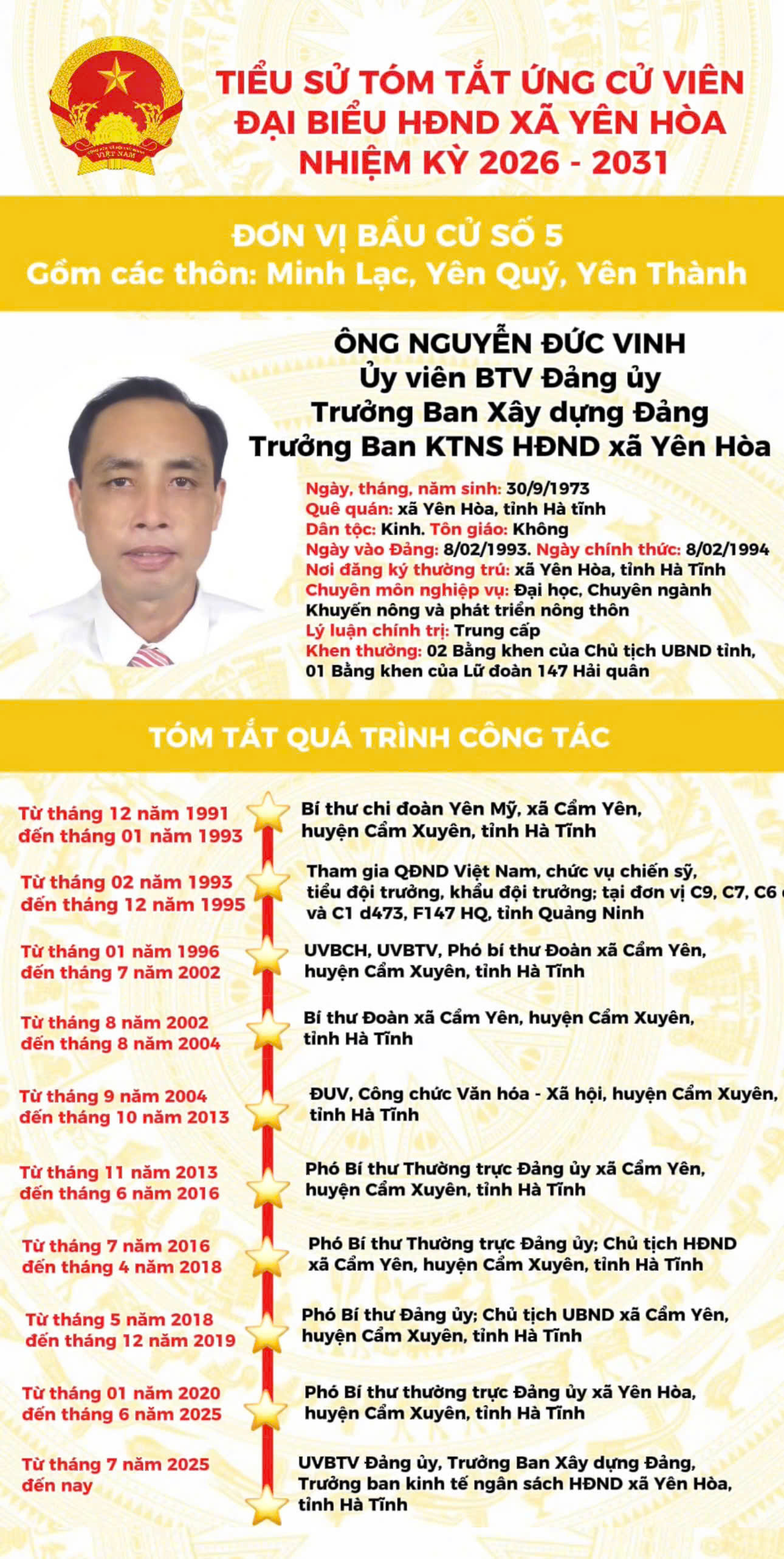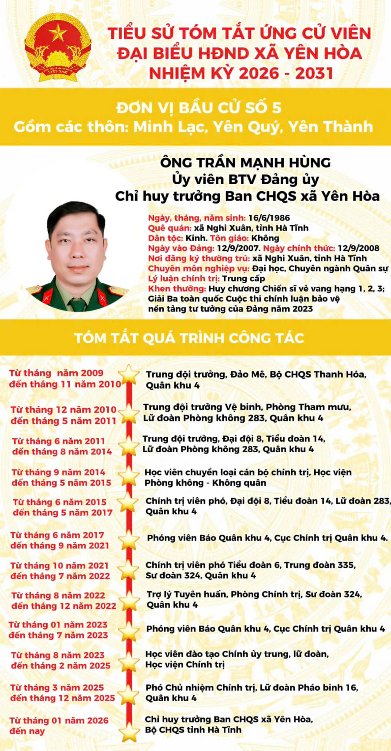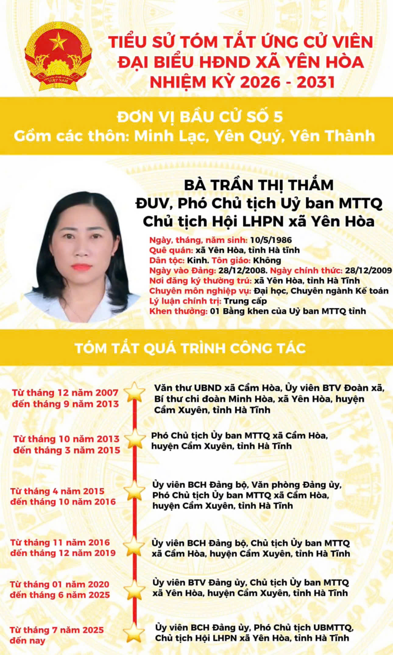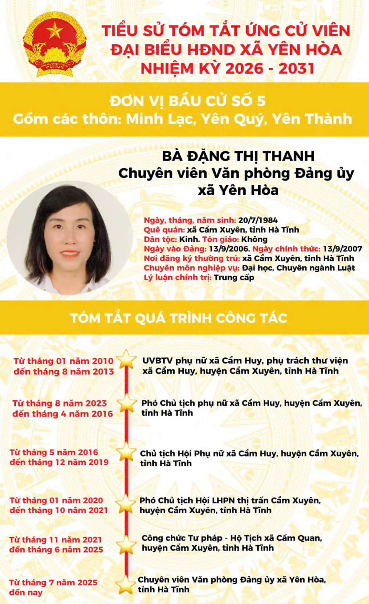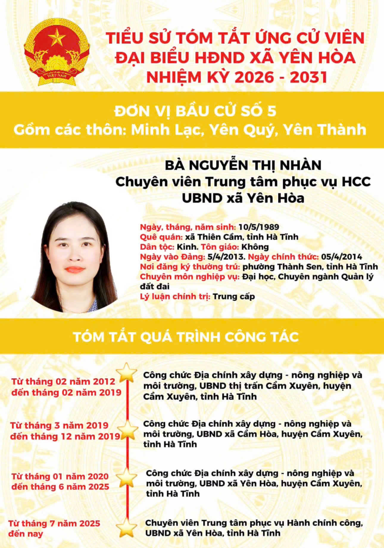 TIỂU SỬ ỨNG CỬ VIÊN ĐẠI BIỂU HĐND XÃ YÊN HÒA NHIỆM KỲ 2026 - 2031 TẠI ĐƠN VỊ BẦU CỬ SỐ 5