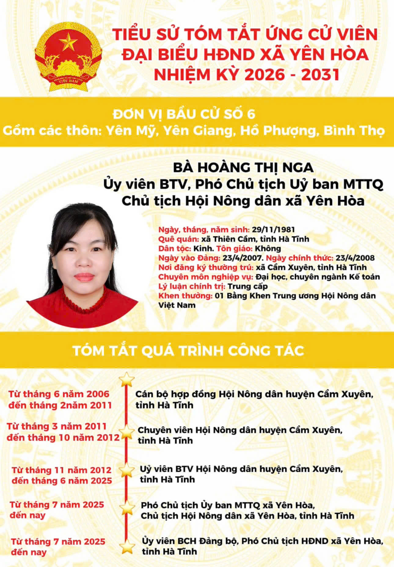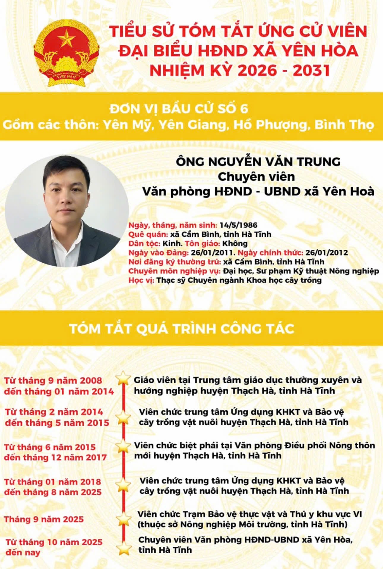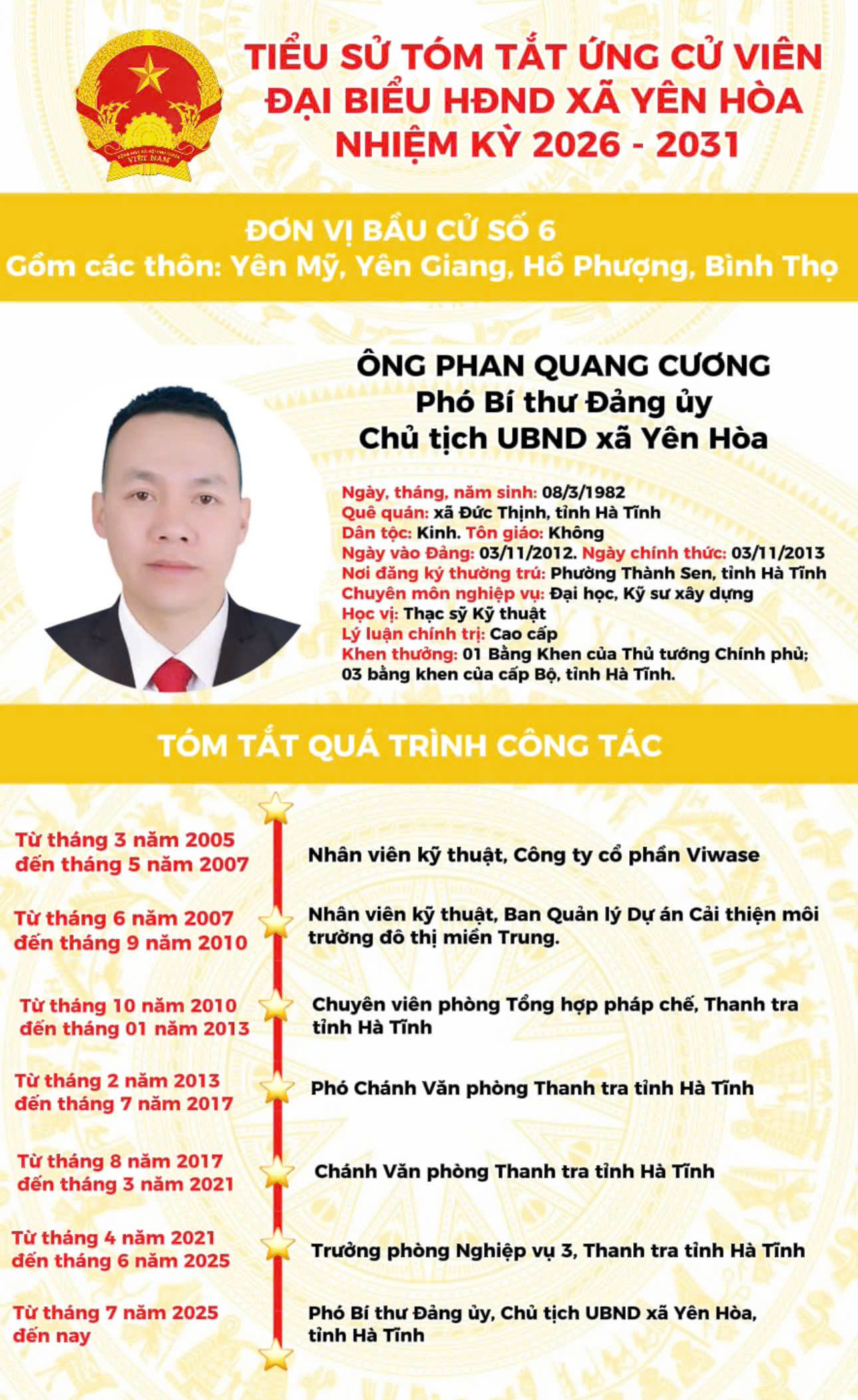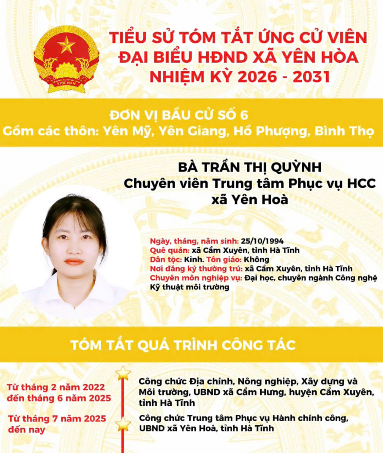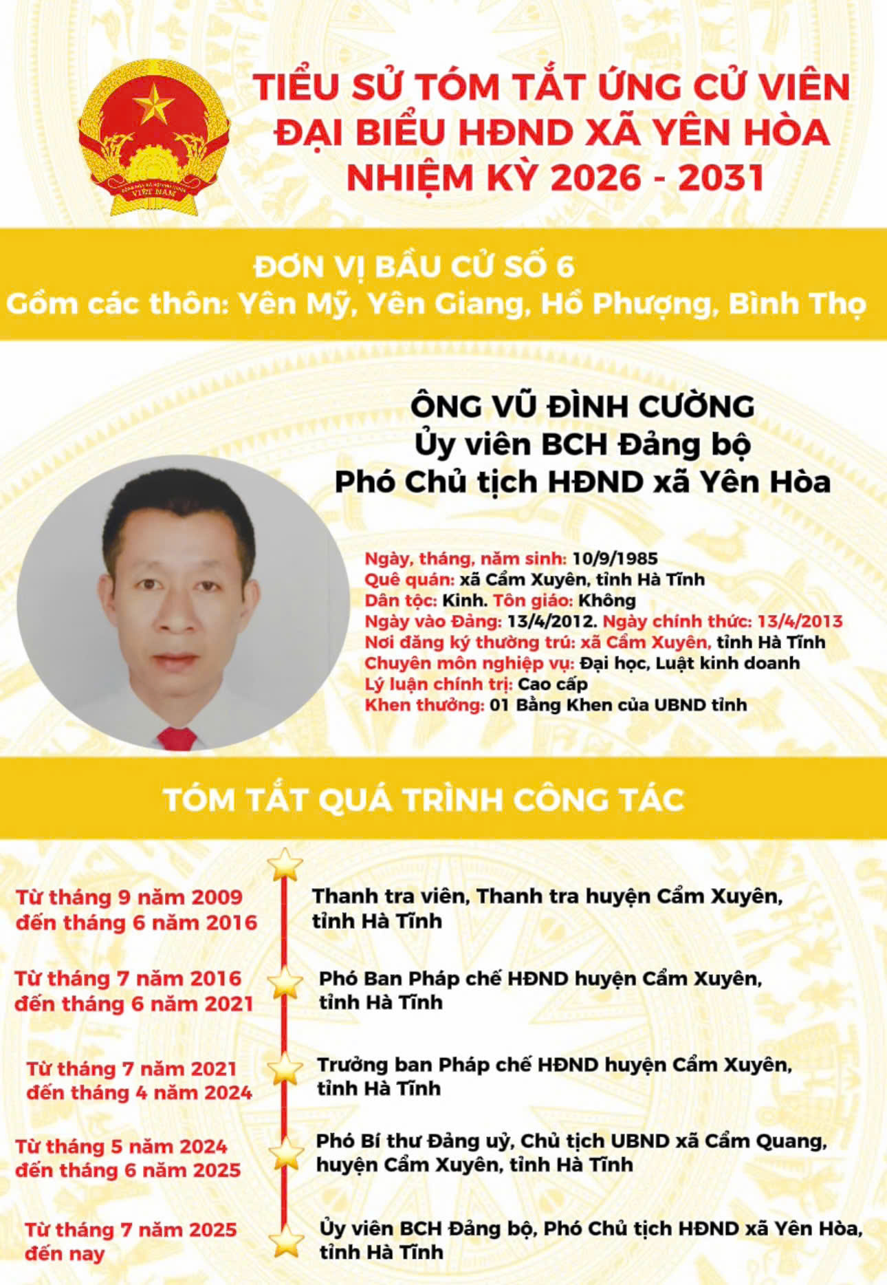 TIỂU SỬ ỨNG CỬ VIÊN ĐẠI BIỂU HĐND XÃ YÊN HÒA NHIỆM KỲ 2026 - 2031 TẠI ĐƠN VỊ BẦU CỬ SỐ 6