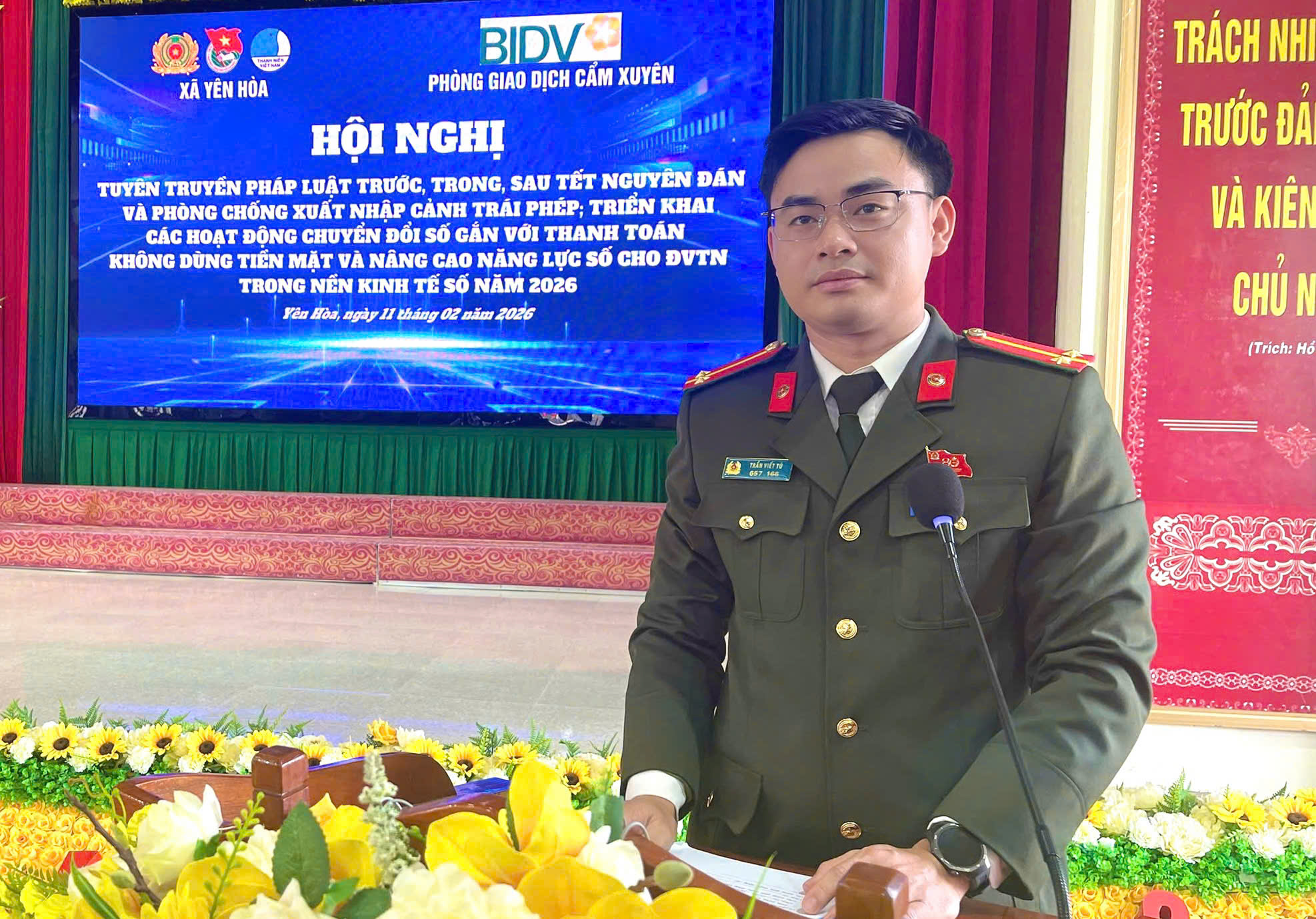 Nhằm nâng cao ý thức chấp hành pháp luật trong đoàn viên, thanh niên và Nhân dân, đồng thời đẩy mạnh thực hiện chuyển đổi số trong giai đoạn hiện nay. Chiều ngày 11/2/2026, Đoàn Thanh niên – Hội LHTN Việt Nam xã Yên Hòa, tỉnh Hà Tĩnh phối hợp với Công an xã và Ngân hàng BIDV Chi nhánh Cẩm Xuyên tổ chức Hội nghị Tuyên truyền pháp luật trước, trong, sau Tết Nguyên đán và phòng chống xuất nhập cảnh trái phép; triển khai các hoạt động chuyển đổi số gắn với thanh toán không dùng tiền mặt và nâng cao năng lực số cho đoàn viên thanh niên trong nền kinh tế số năm 2026.