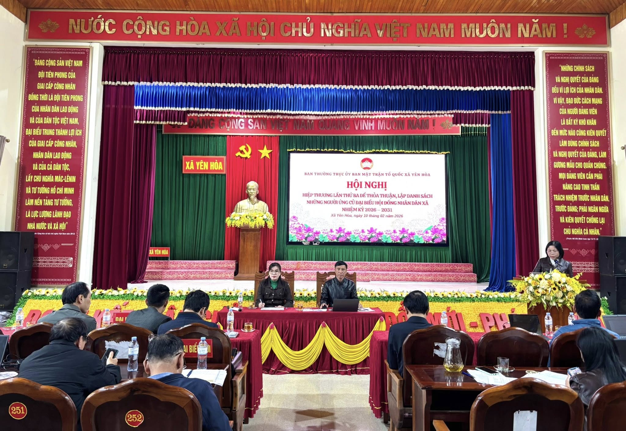 Sáng ngày 10/2/2026, Uỷ ban MTTQ xã Yên Hoà, tỉnh Hà Tĩnh tổ chức hội nghị hiệp thương lần thứ ba để thỏa thuận lập danh sách sơ bộ những người ứng cử đại biểu Hội đồng nhân dân xã Yên Hòa, nhiệm kỳ 2026 - 2031 của từng cơ quan, tổ chức, đơn vị.
