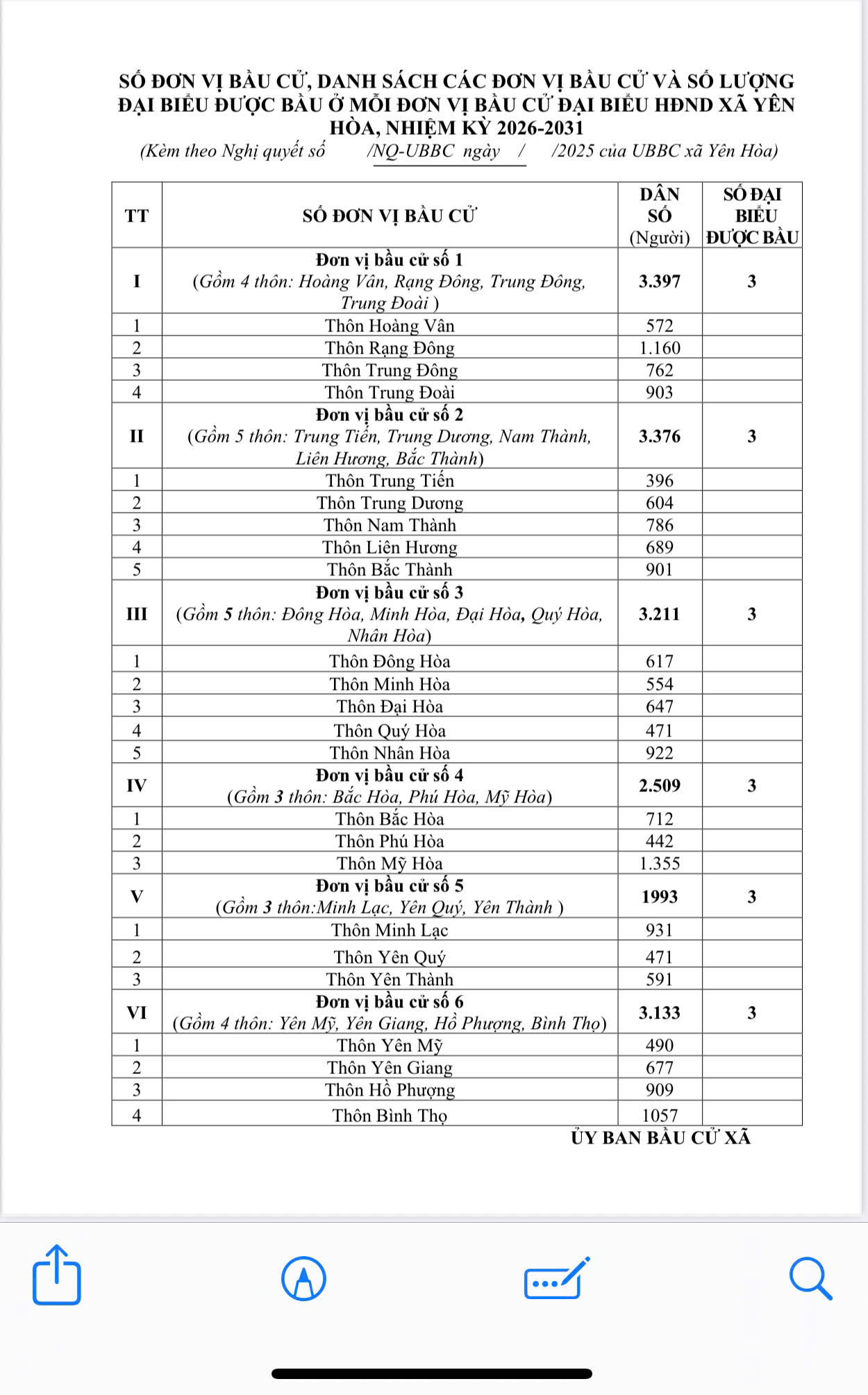 Về việc ấn định một số đơn vị bầu cử, danh sách các đơn vị bầu cử và số lượng đại biểu được bầu ở mỗi đơn vị bầu cử đại biểu HĐND xã, nhiệm kỳ 2026 - 2031