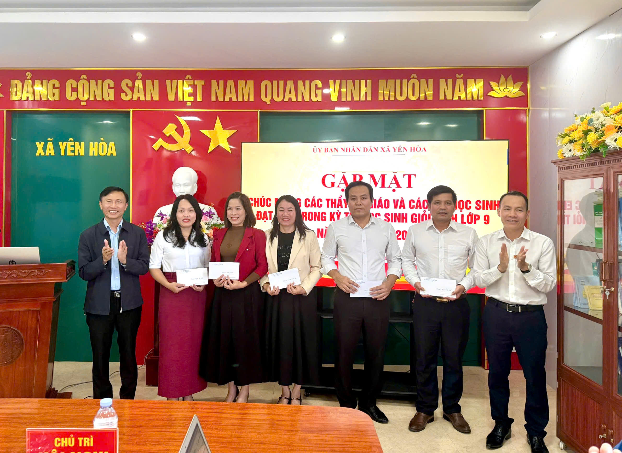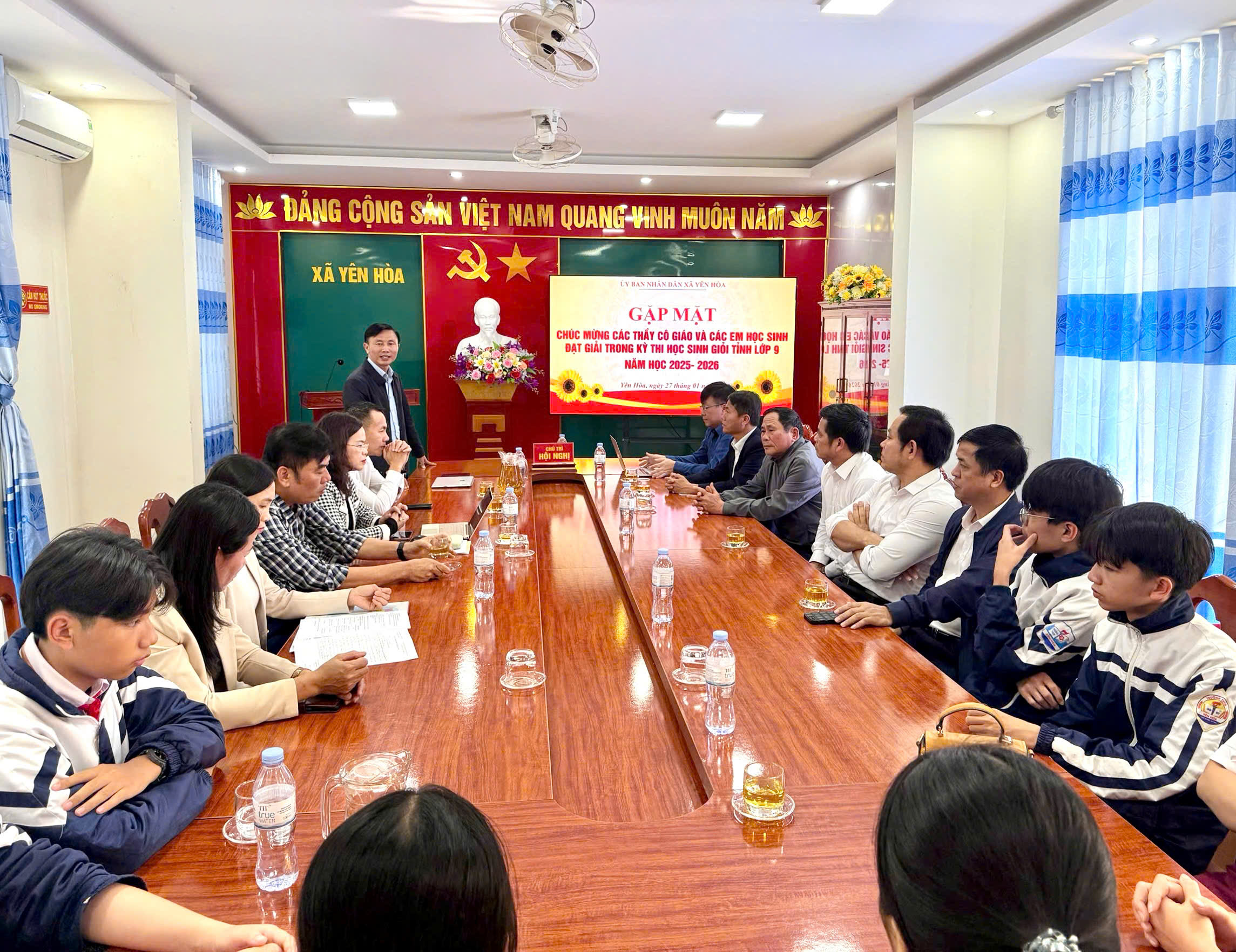 Chiều ngày 27/1/2026, UBND xã Yên Hoà, tỉnh Hà Tĩnh tổ chức gặp mặt chúc mừng các thầy, cô giáo và các em học sinh đạt giải trong Kỳ thi học sinh giỏi tỉnh lớp 9 năm học 2025 – 2026. Tham dự buổi gặp mặt có đồng chí Trần Đình Hải – Bí thư Đảng uỷ, Chủ tịch HĐND xã; đồng chí Phan Quang Cương – Phó Bí thư Đảng uỷ, Chủ tịch UBND xã; lãnh đạo UBND xã; hội khuyến học xã; đại diện các phòng, ban chuyên môn cùng các giáo viên và học sinh được khen thưởng.