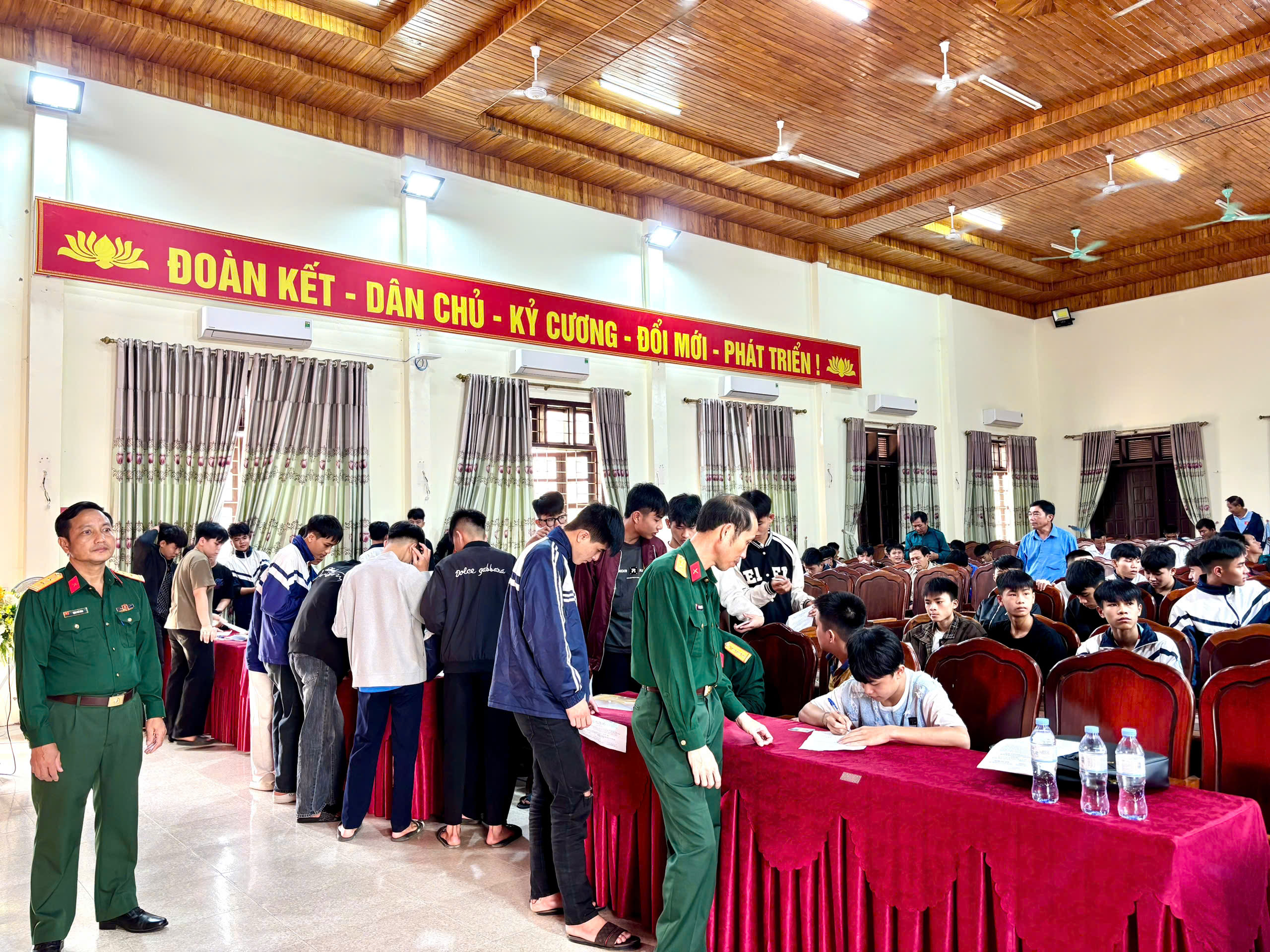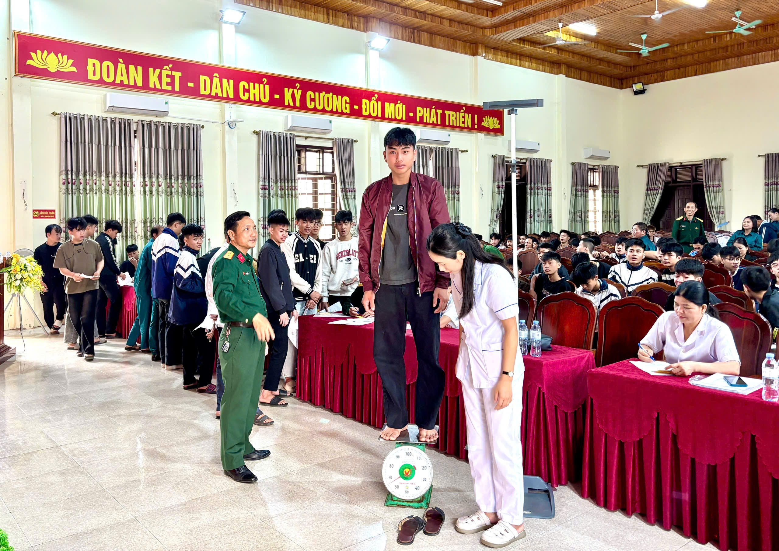 Ngay sau lễ khai mạc, Ban Tổ chức đã tiến hành khám tuyển cho các công dân trong diện đăng ký với các nội dung như: kiểm tra hồ sơ, lý lịch; khám thể lực (chiều cao, cân nặng) theo đúng quy trình.