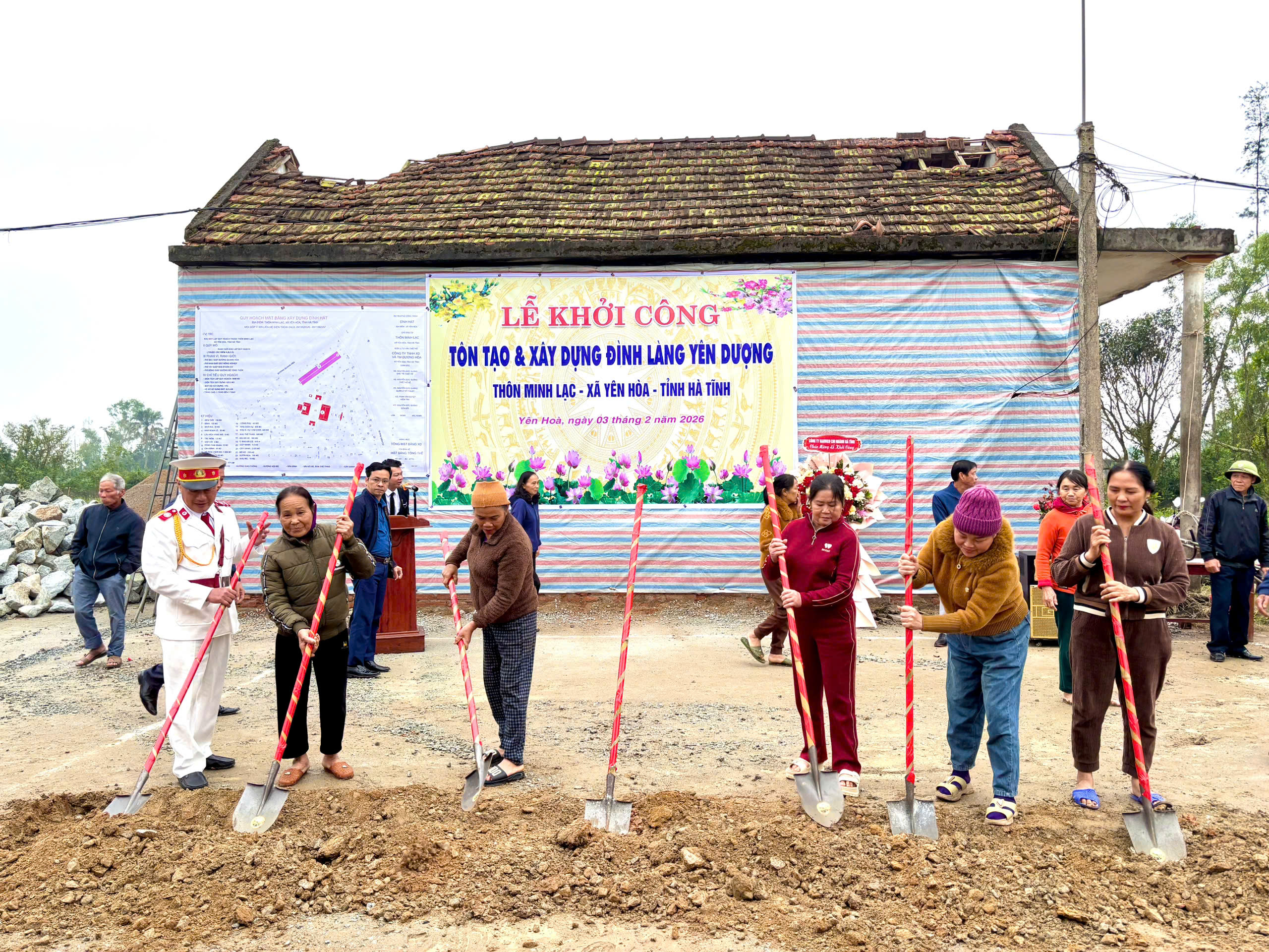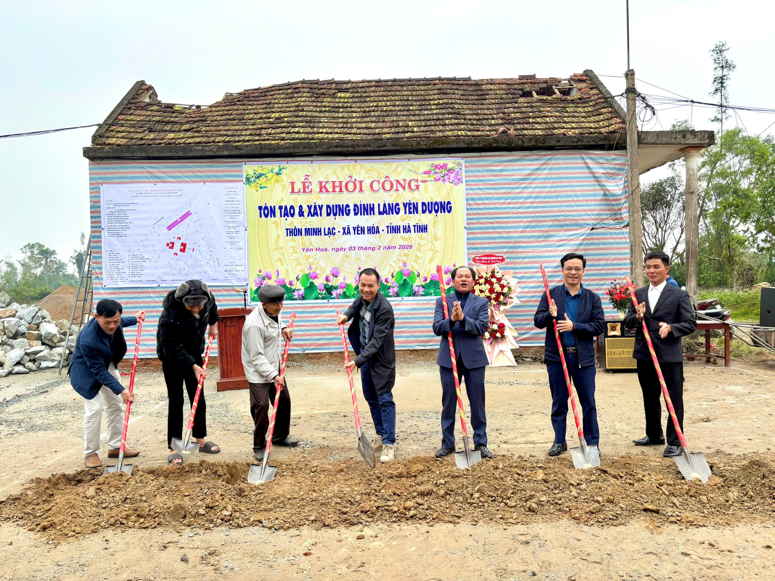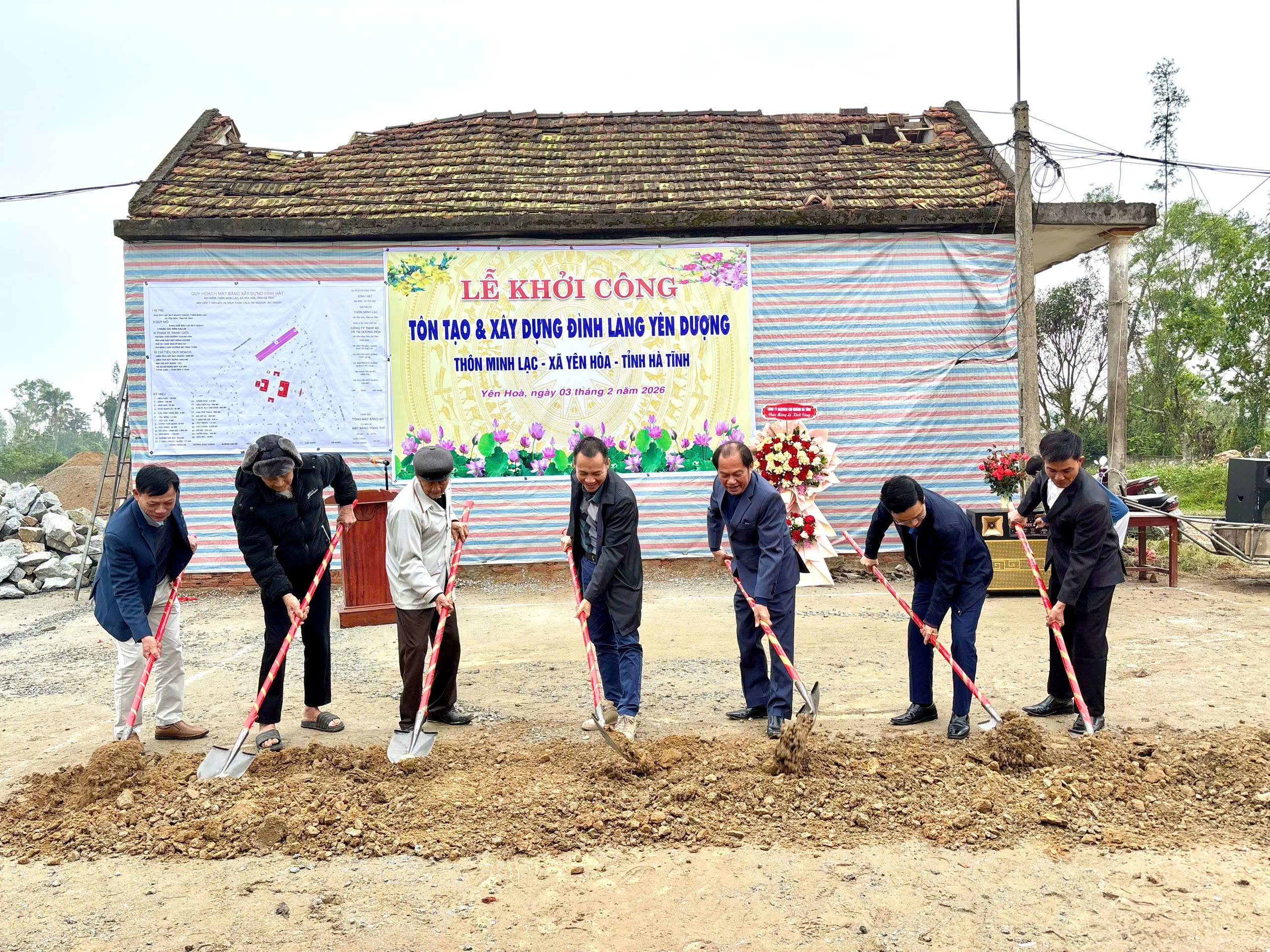 Sáng ngày 03/2/2026, thôn Minh Lạc, xã Yên Hoà, tỉnh Hà Tĩnh long trọng tổ chức Lễ khởi công tôn tạo và xây dựng Đình làng Yên Dượng (hay còn gọi là Đình Hát). Về than dự có đồng chí Trần Quang Trung – Phó Bí thư Thường trực Đảng uỷ xã; đồng chí Phan Quang Cương – Phó Bí thư Đảng uỷ, Chủ tịch UBND xã; Lãnh đạo UBND; các phòng, ban chuyên môn xã; đại diện con em xa quê cùng Bí thư, Thôn trưởng và đông đảo bà con nhân dân địa phương.