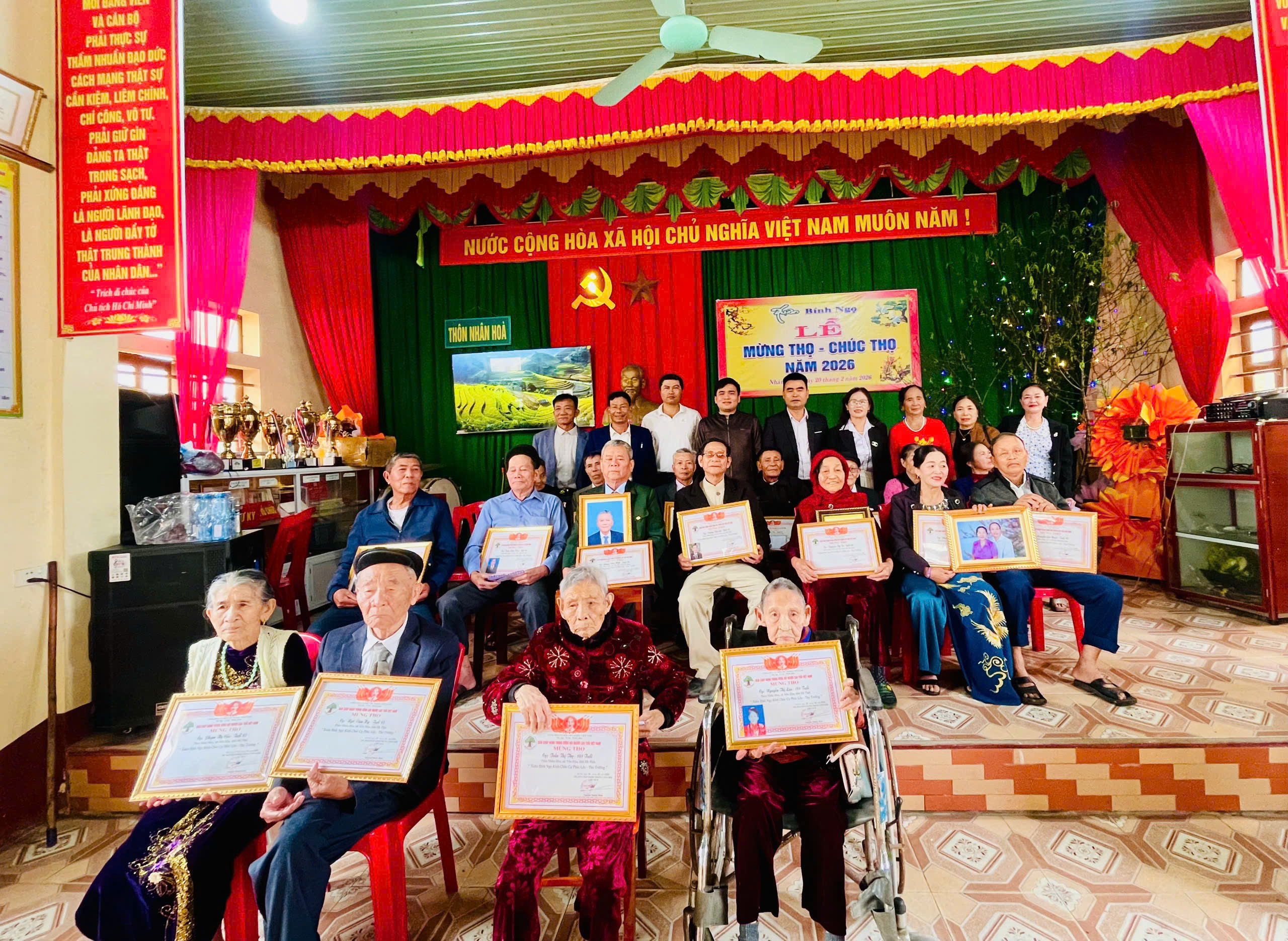 Buổi lễ tại các thôn được tổ chức trang trọng, ấm cúng, thể hiện sự quan tâm sâu sắc của cấp uỷ, chính quyền và nhân dân đối với người cao tuổi. Đại diện lãnh đạo xã và thôn đã trao giấy mừng thọ, quà chúc thọ, ân cần thăm hỏi sức khoẻ, đời sống tinh thần của các cụ; đồng thời bày tỏ lòng tri ân đối với những đóng góp to lớn của các bậc cao niên trong quá trình xây dựng và phát triển quê hương.