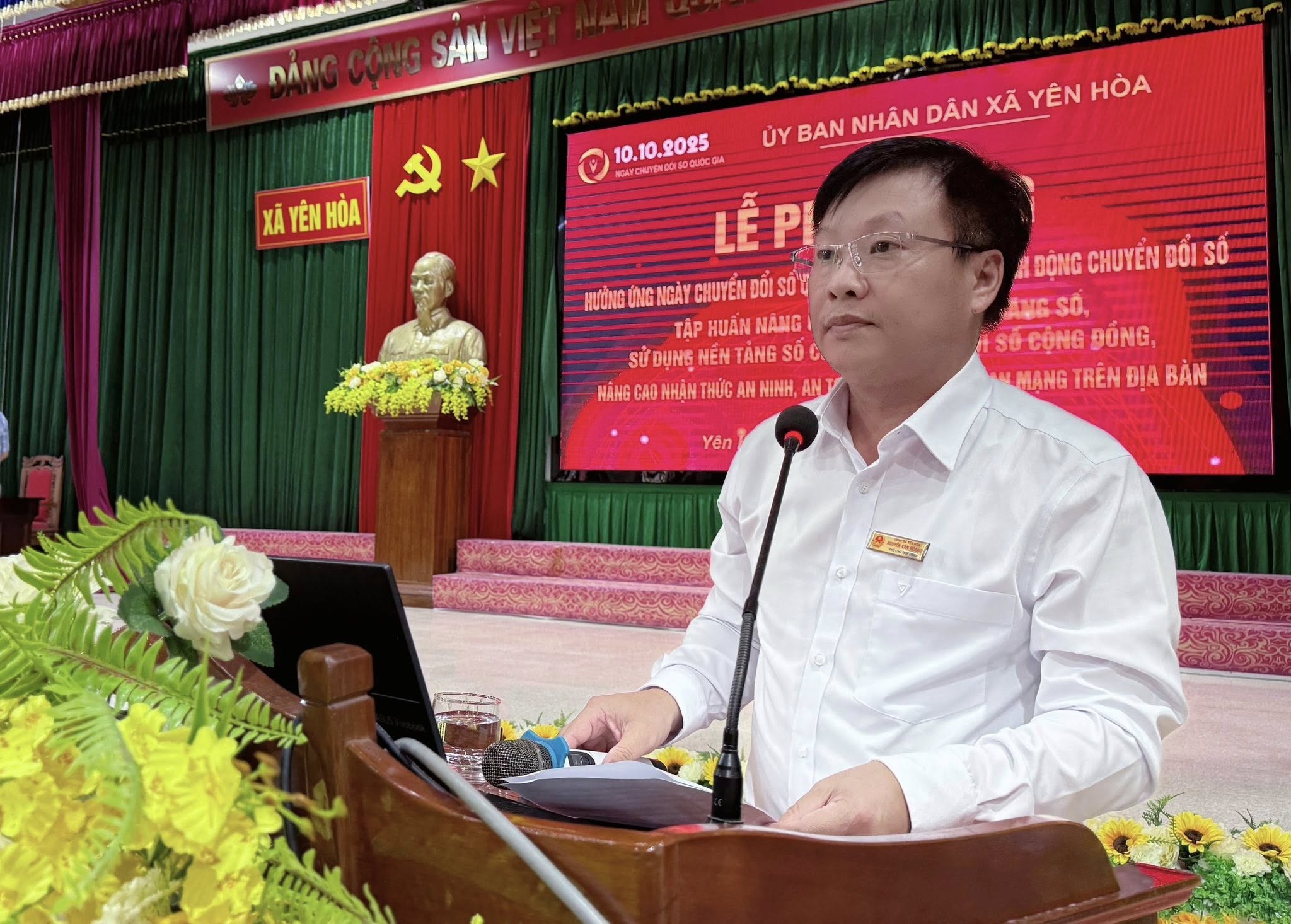 Uỷ ban nhân dân xã Yên Hoà vừa tổ chức Lễ phát động hưởng ứng Ngày Chuyển đổi số Quốc gia (10/10) và tháng hành động chuyển đổi số năm 2025. Đây là sự kiện quan trọng, thể hiện quyết tâm của địa phương trong việc đẩy mạnh ứng dụng công nghệ thông tin, nâng cao hiệu quả hoạt động của chính quyền và phục vụ người dân ngày càng tốt hơn.