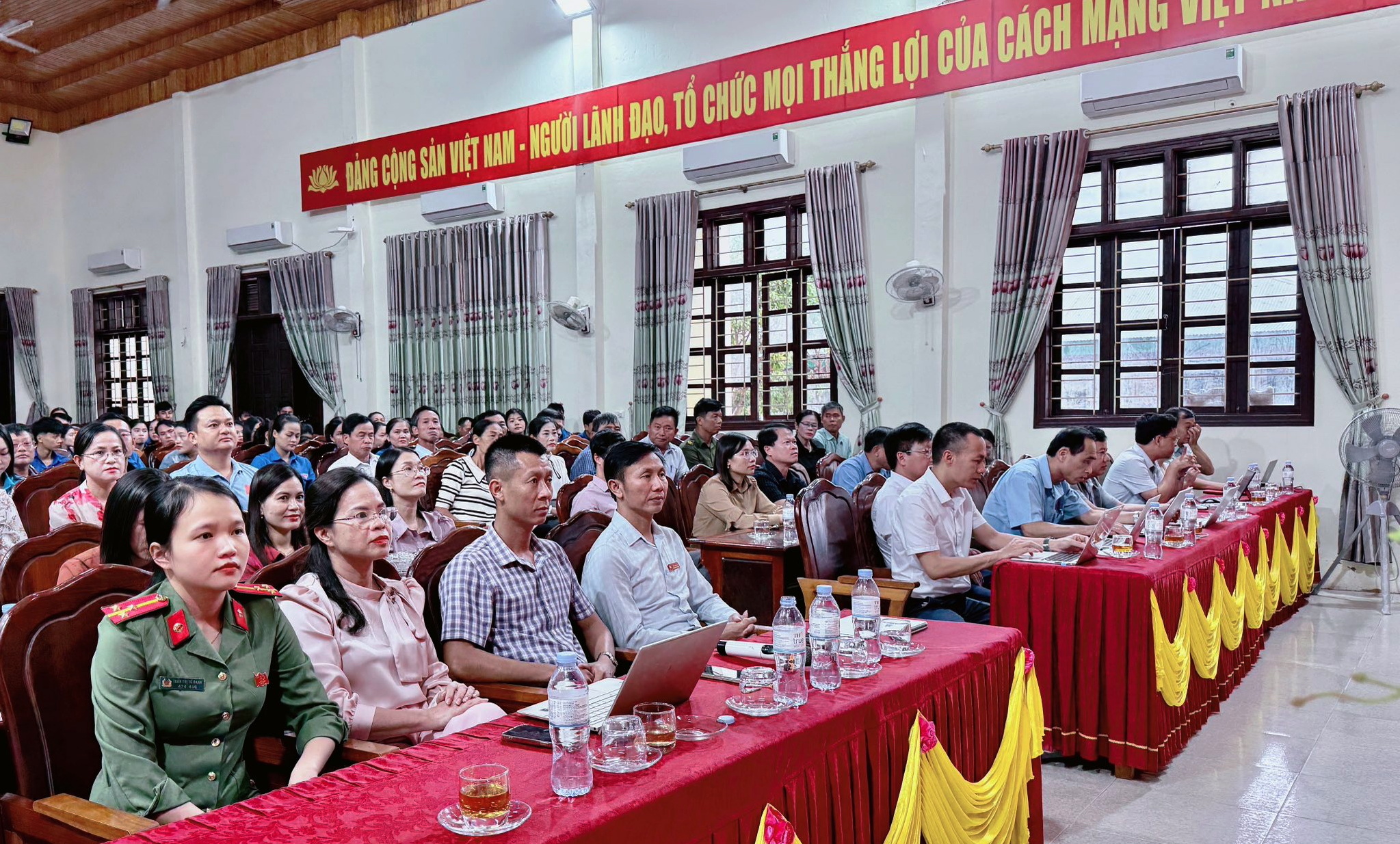 Tham dự chương trình có các đồng chí lãnh đạo chủ chốt của xã: Đ/c Trần Đình Hải - Bí thư Đảng uỷ, Chủ tịch HĐND xã; Đ/c Trần Quang Trung - Phó Bí thư Thường trực Đảng uỷ; Đ/c Phan Quang Cương - Phó Bí thư Đảng uỷ, Chủ tịch UBND xã. Cùng dự còn có các đồng chí trong BTV, Ban chấp hành Đảng uỷ, lãnh đạo các ban ngành, đoàn thể, đại diện các trường học, bí thư chi bộ, trưởng thôn và lực lượng nòng cốt là các Tổ chuyển đổi số cộng đồng trên địa bàn.