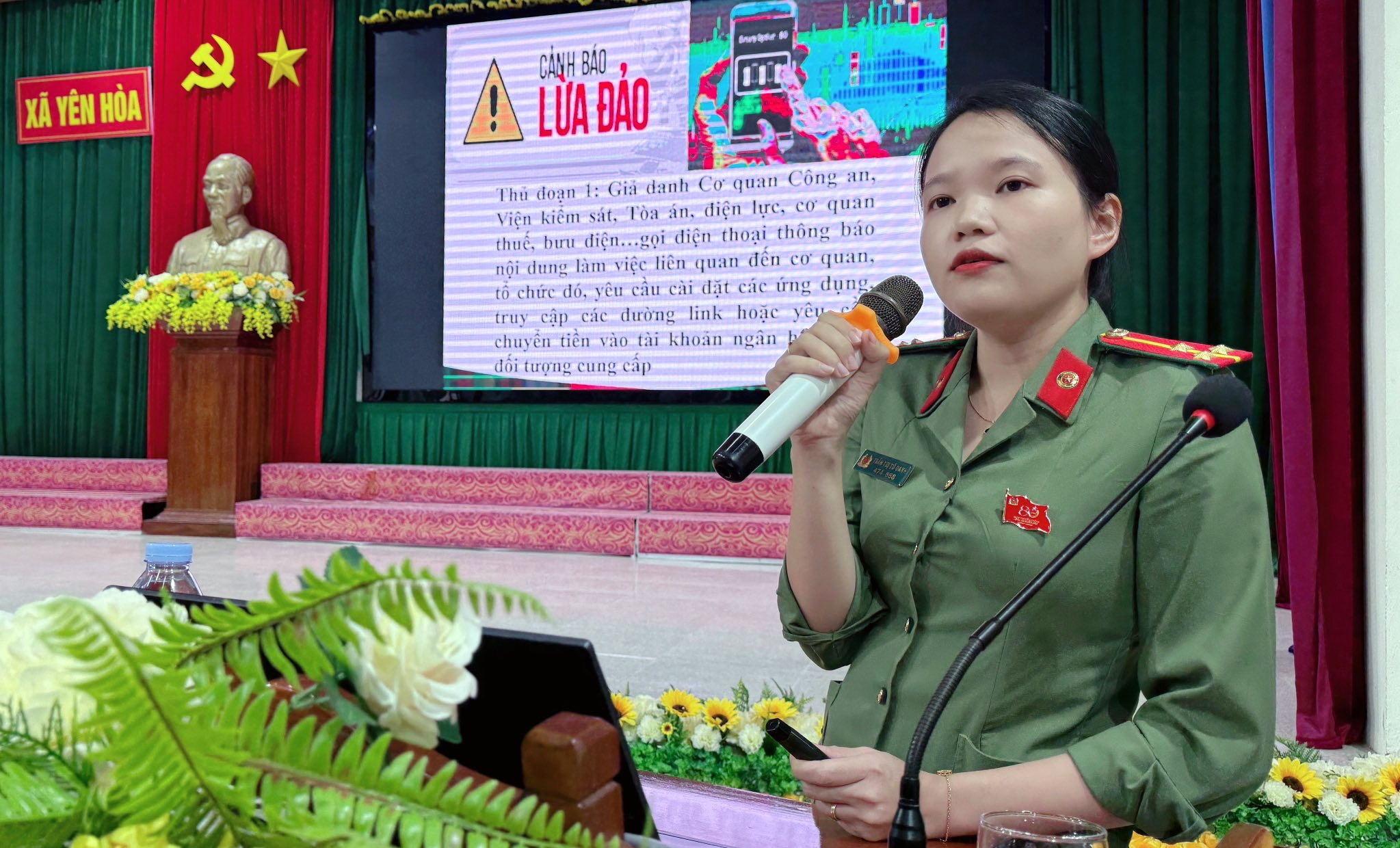 Đ/c Nguyễn Thị Tố Oanh - Công an xã triển khai nội dung nâng cao nhận thức an ninh, an toàn trên không gian mạng