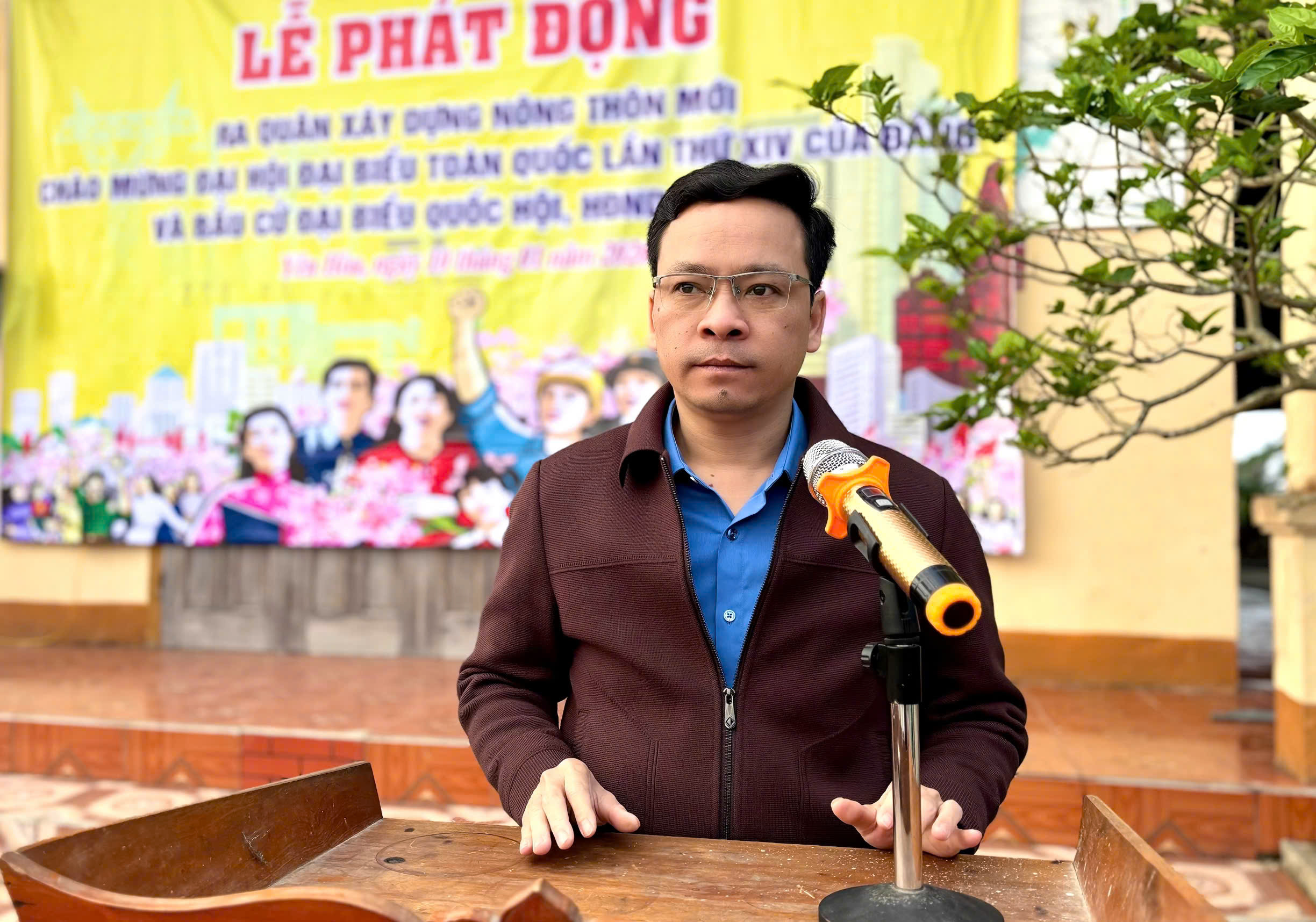 Đồng chí Hoàng Văn Linh - Ủy viên BTV Đảng ủy, Phó Chủ tịch UBND xã phát động lễ ra quân