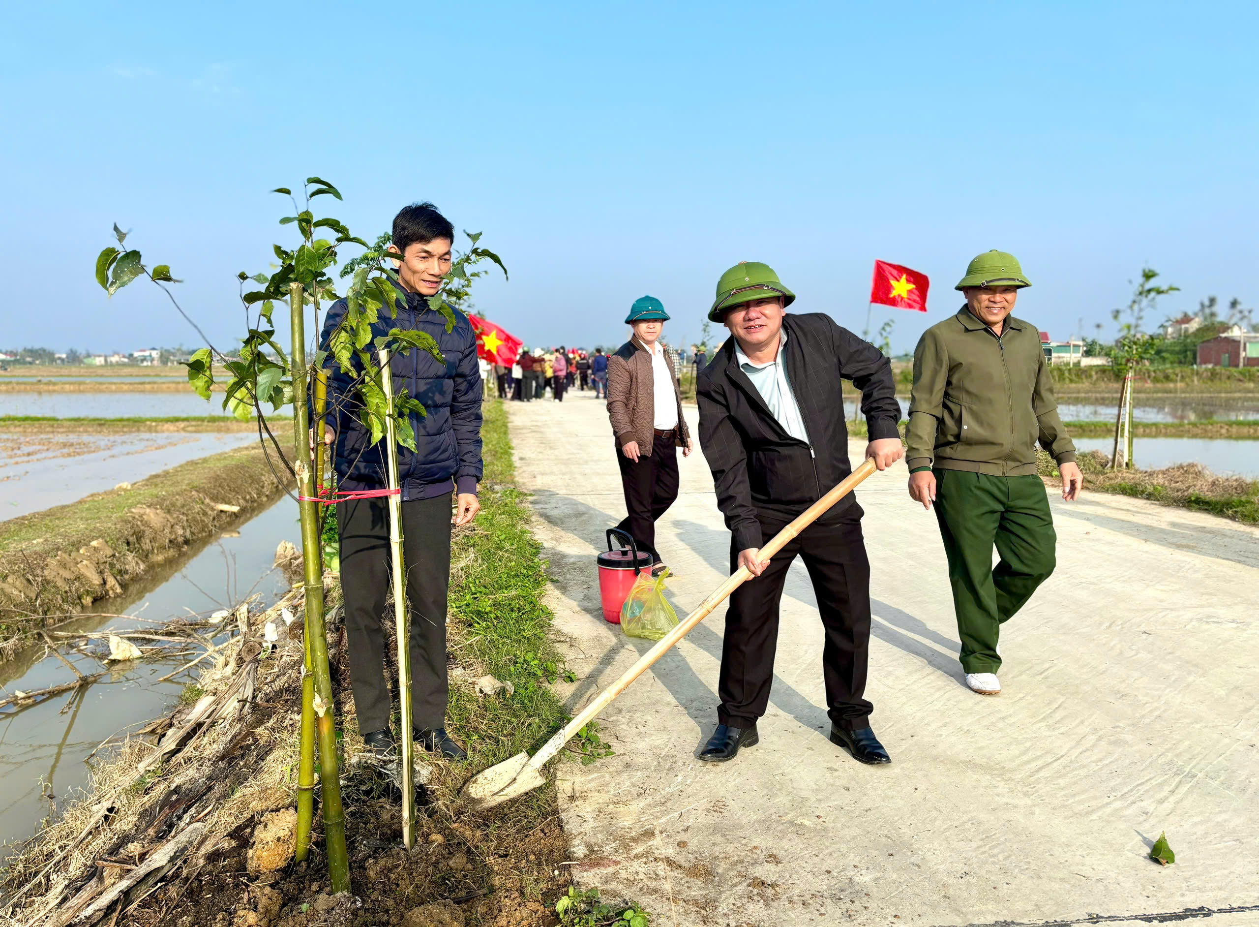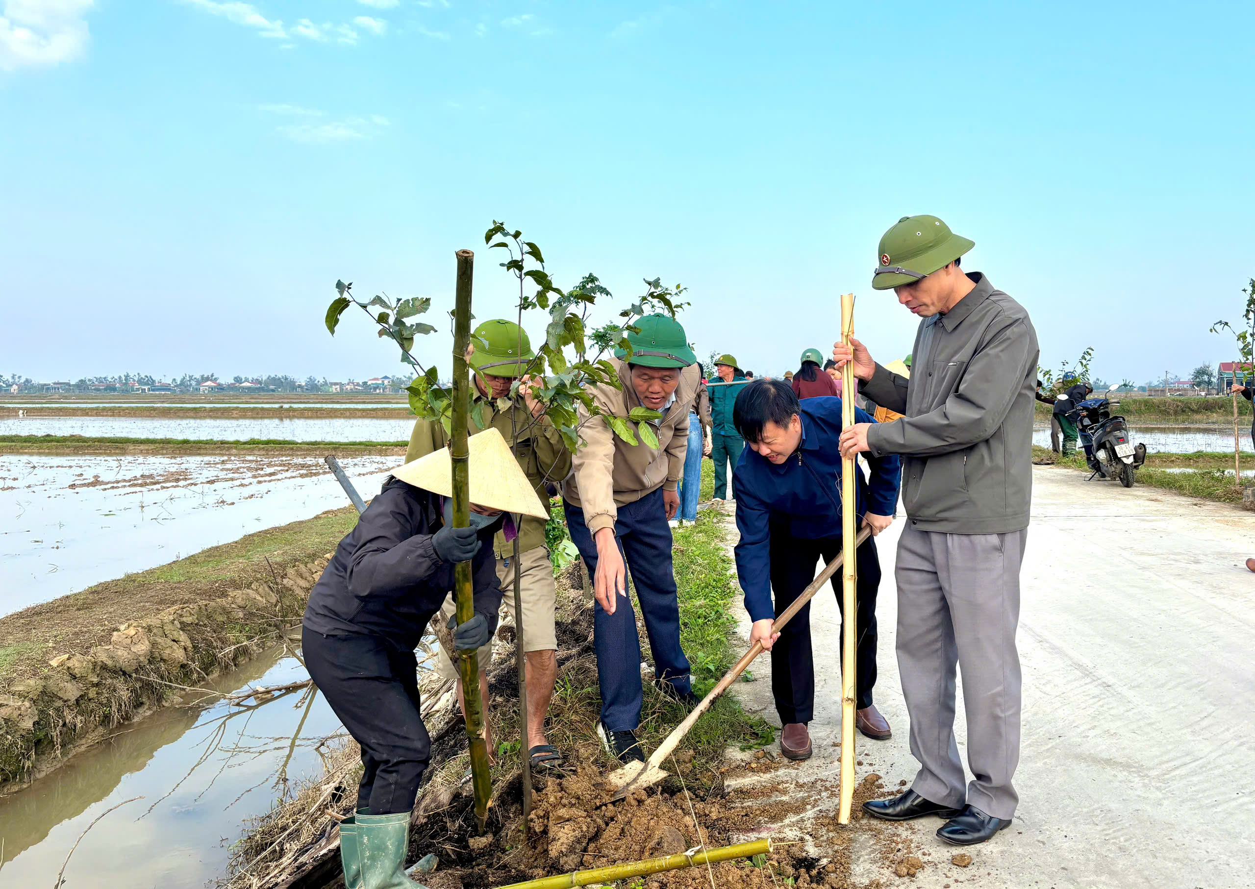 Ngay sau lễ phát động, các lực lượng cán bộ, đảng viên, công chức, viên chức và bà con Nhân dân đã đồng loạt ra quân thực hiện nhiều phần việc thiết thực như: Trồng 200 cây sao đen tại tuyến đường TX 78, vệ sinh môi trường, chỉnh trang khu dân cư… góp phần tạo cảnh quan xanh - sạch - đẹp, từng bước hình thành nếp sống văn minh trong Nhân dân.