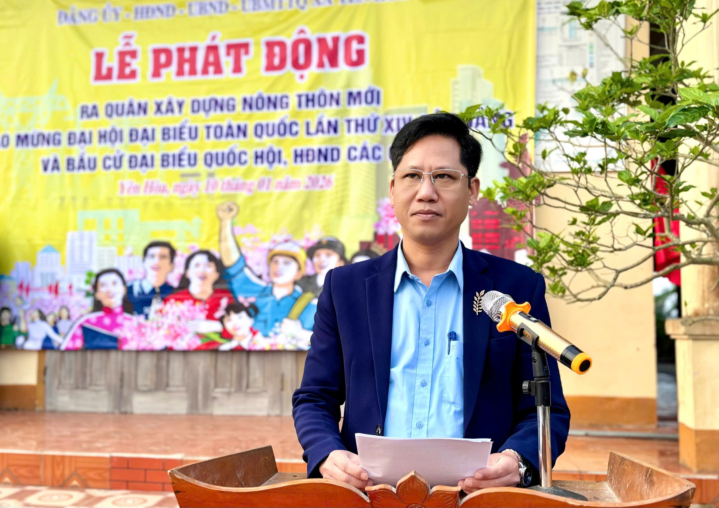 Tại buổi lễ, đồng chí Hoàng Văn Linh - Ủy viên BTV Đảng ủy, Phó Chủ tịch UBND xã đã phát động ra quân xây dựng Nông thôn mới. Đồng chí khẳng định xây dựng Nông thôn mới là sự nghiệp lâu dài, có điểm khởi đầu nhưng không có điểm kết thúc. Thành công chỉ đến khi có sự chung sức, đồng lòng của cả hệ thống chính trị và toàn thể Nhân dân. Đồng thời đồng chí Phó Chủ tịch UBND xã tin tưởng rằng phong trào ra quân xây dựng Nông thôn mới năm 2026 trên địa bàn xã sẽ tạo khí thế thi đua mạnh sẽ, lan tỏa sâu rộng, góp phần lập thành tích thiết thực chào mừng các sự kiện chính trị trọng đại của đất nước, đưa xã Yên Hòa phát triển nhanah, bền vững, xứng đáng với niềm tin và kỳ vọng của Nhân dân.