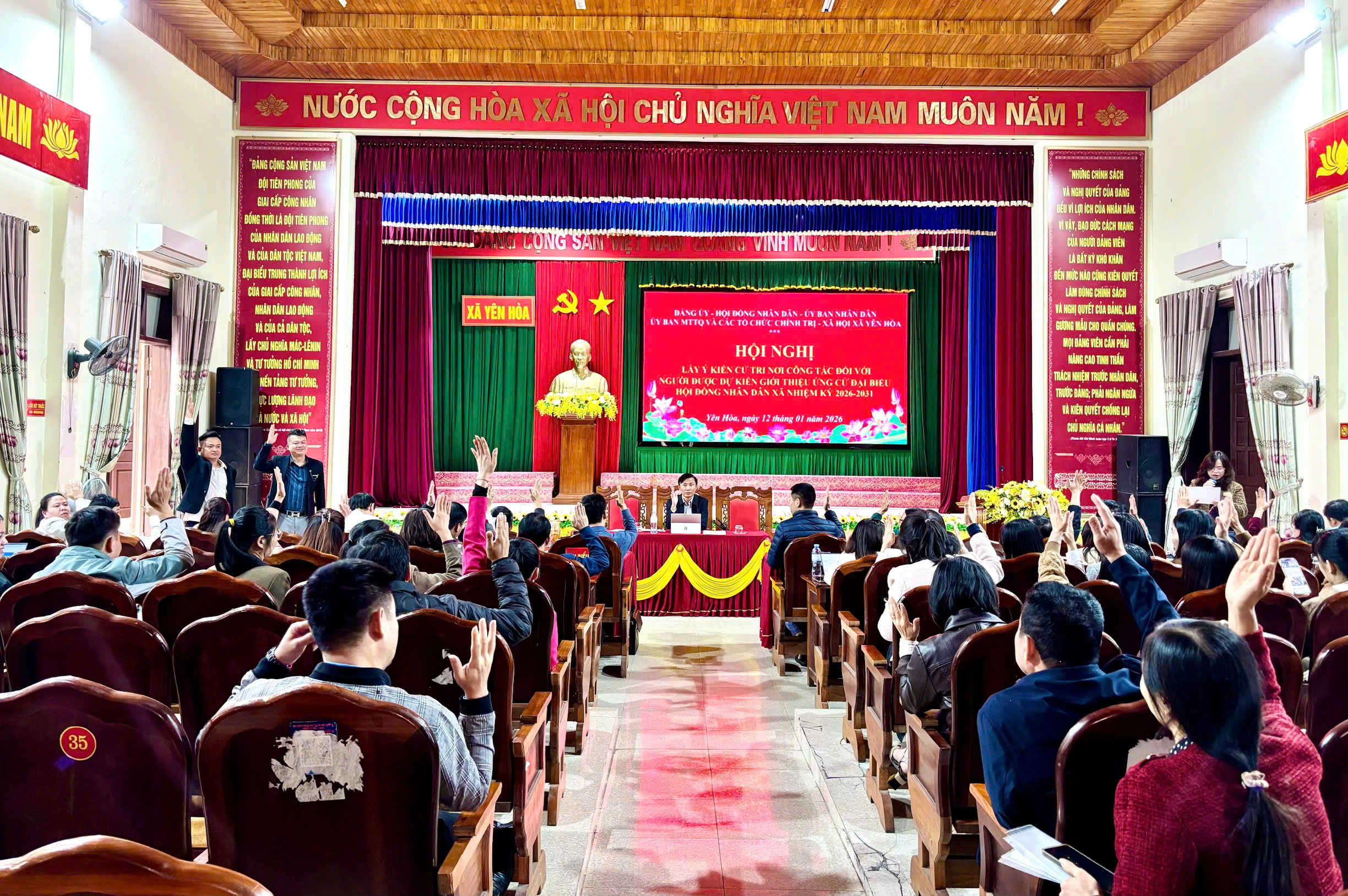 Hội nghị đã thông qua các văn bản hướng dẫn của Trung ương và của tỉnh về công tác bầu cử; đồng thời giới thiệu danh sách, tóm tắt tiểu sử 22 đồng chí được dự kiến giới thiệu ứng cử đại biểu HĐND xã nhiệm kỳ 2026–2031. Trên tinh thần dân chủ, công khai, minh bạch và trách nhiệm, các đại biểu tham dự hội nghị đã tham gia thảo luận, đóng góp nhiều ý kiến tâm huyết, tập trung đánh giá về phẩm chất chính trị, đạo đức, lối sống, năng lực công tác, uy tín của từng đồng chí được giới thiệu ứng cử.