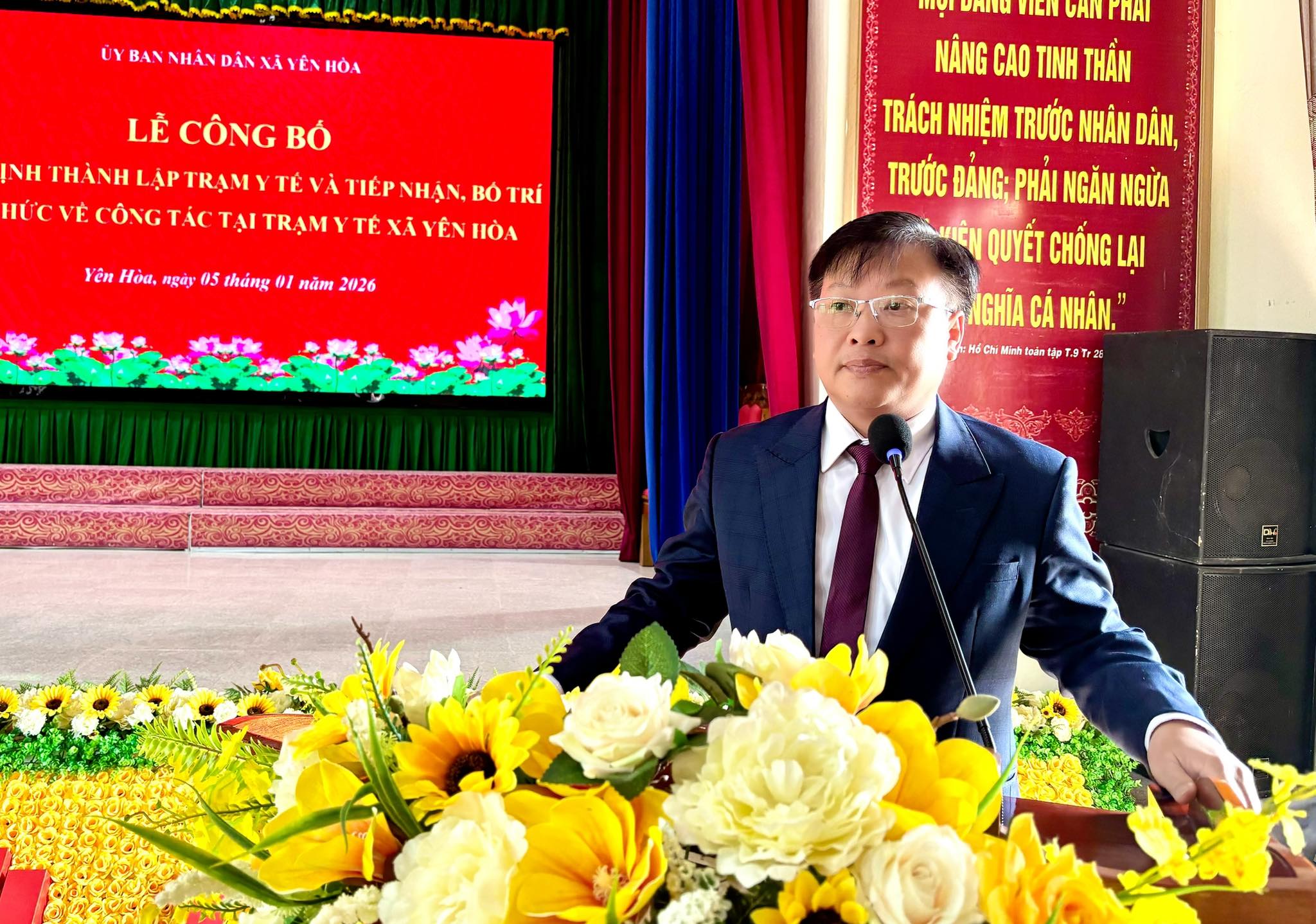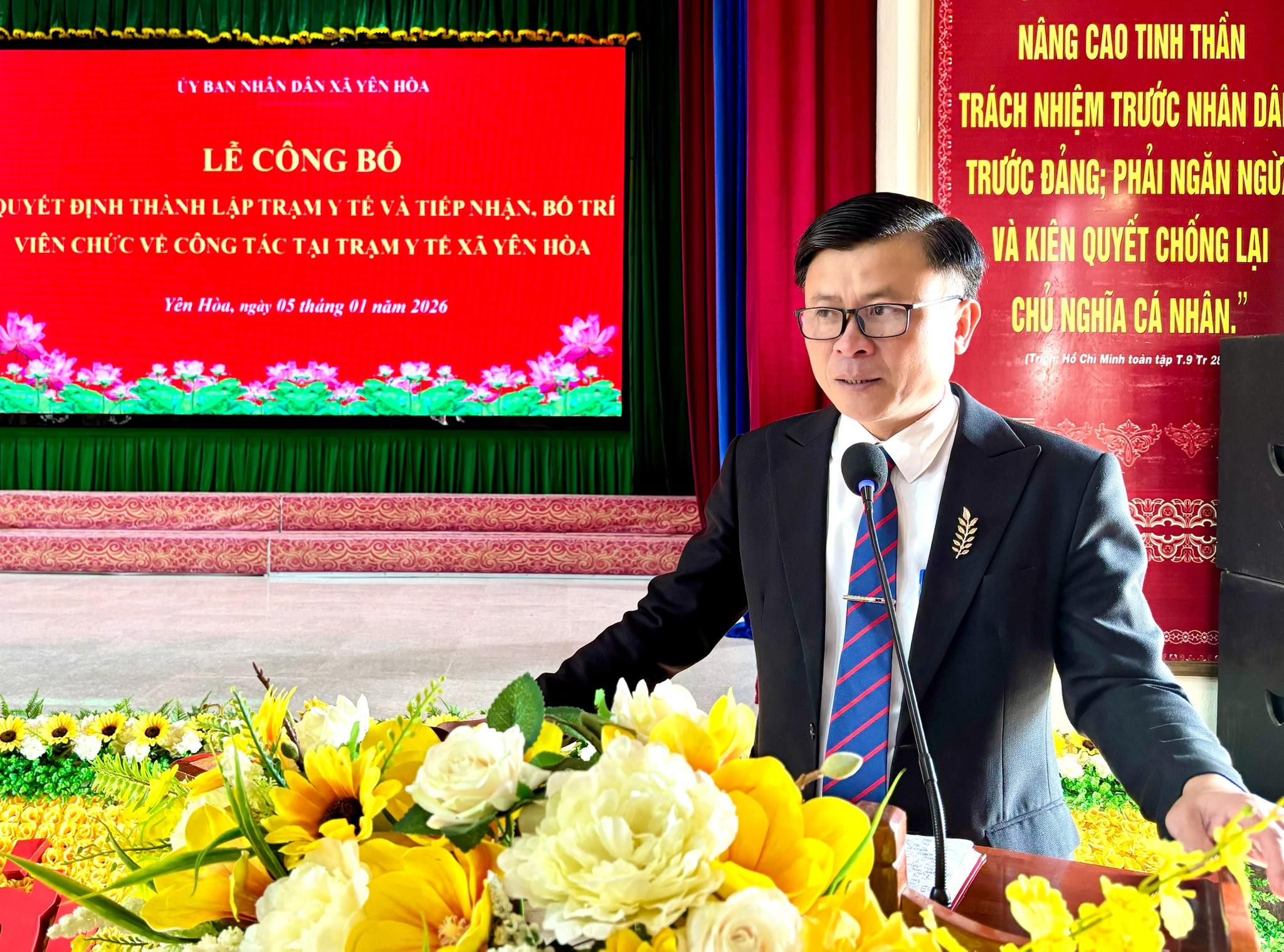 Ngay sau Lễ chào cờ, xã Yên Hòa tổ chức công bố quyết định thành lập và tiếp nhận, bố trí viên chức về công tác tại trạm Y tế xã. Theo đó, đồng chí Trưởng phòng Văn hóa xã đã công bố Quyết định thành lập Trạm Y tế xã và tiếp nhận 20 viên chức về công tác theo đúng quy định. Giao đồng chí Nguyễn Văn Hoàng -ĐUV, Phó Chủ tịch UBND phụ trách và chỉ đạo hoạt động Trạm Y tế xã.