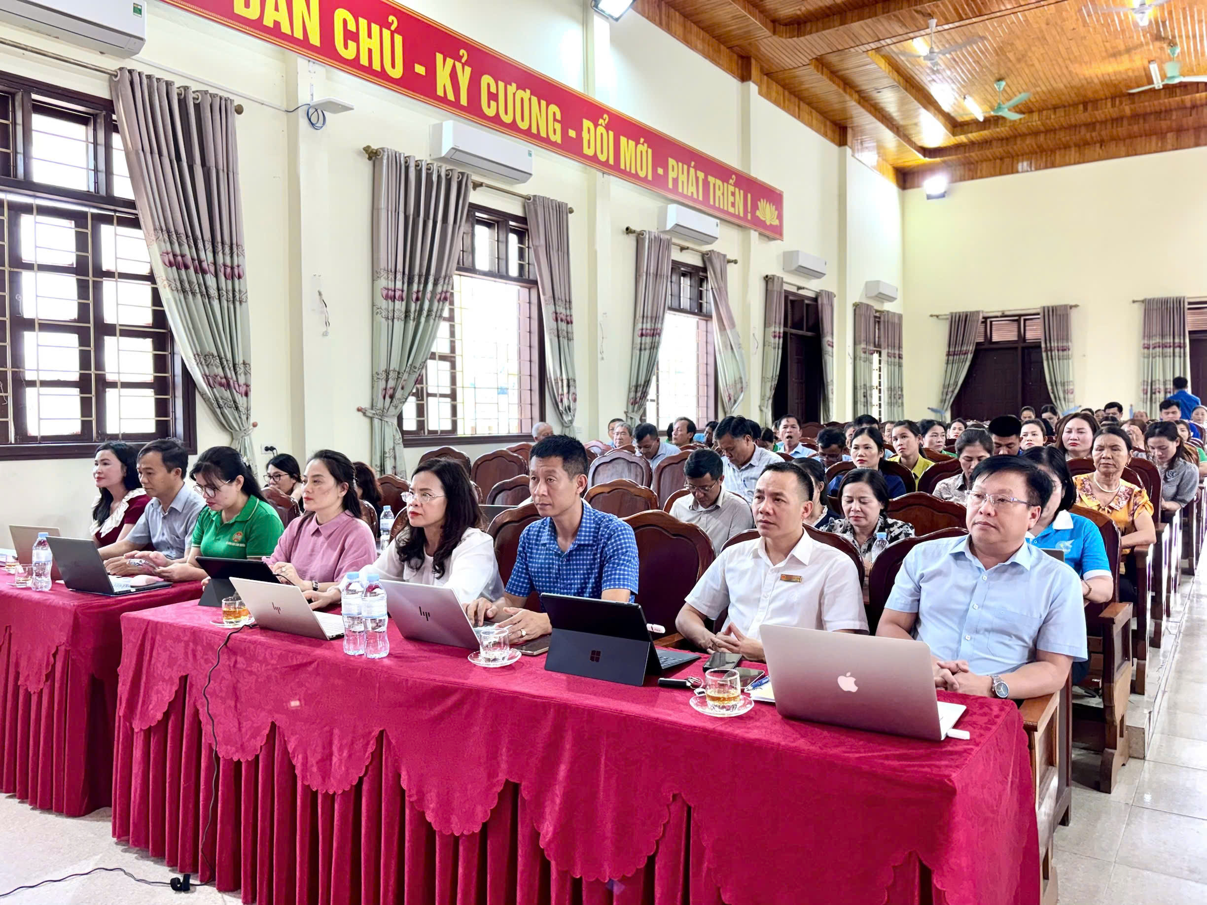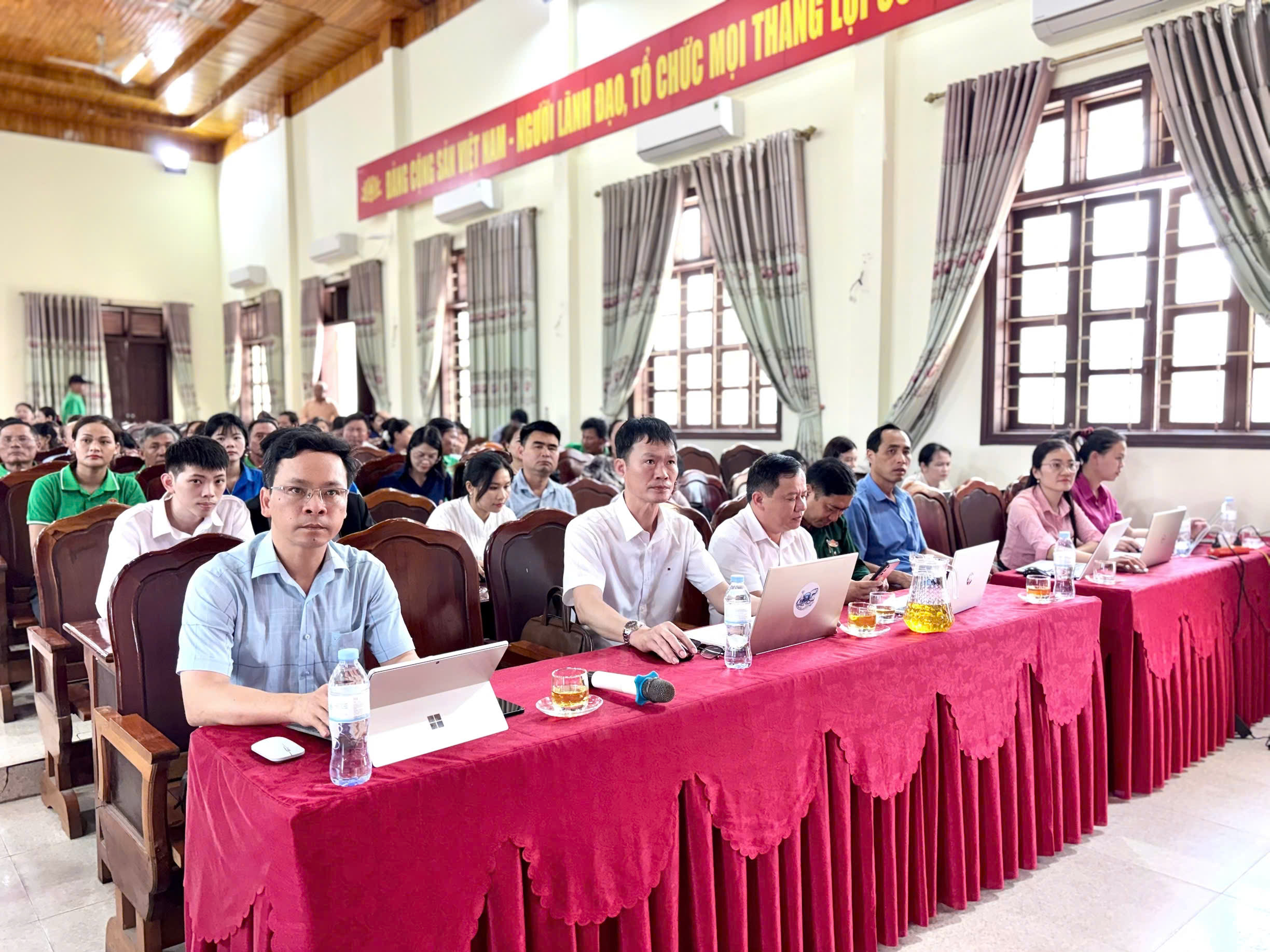 Tham dự có đồng chí Lê Văn Đương - Trưởng phòng Công nghệ thông tin và Chuyển đổi số, Trung tâm Khoa học Công nghệ và chuyển đổi số tỉnh Hà Tĩnh cùng các đồng chí trong đoàn công tác. Về phía xã có đồng chí Trần Quang Trung - Phó Bí thư Thường trực Đảng uỷ xã; các đồng chí trong Thường trực Đảng uỷ, Uỷ viên BTV Đảng uỷ, Uỷ viên BCH Đảng bộ xã; Thường trực HĐND, lãnh đạo UBND, Uỷ ban MTTQ và các đoàn thể; đại diện các phòng, ban, ngành, cơ quan, đơn vị; Bí thư chi bộ, Thôn trưởng và thành viên Tổ chuyển đổi số cộng đồng tại các thôn trên địa bàn.