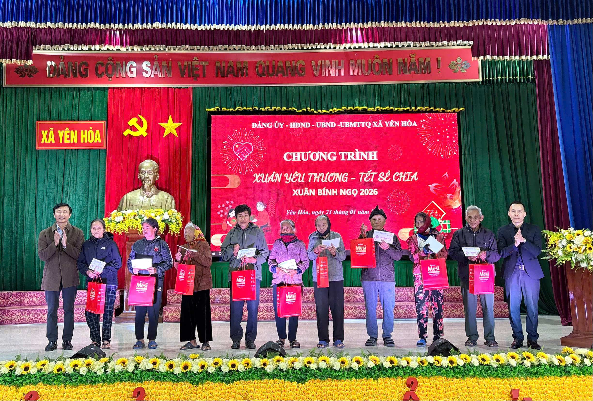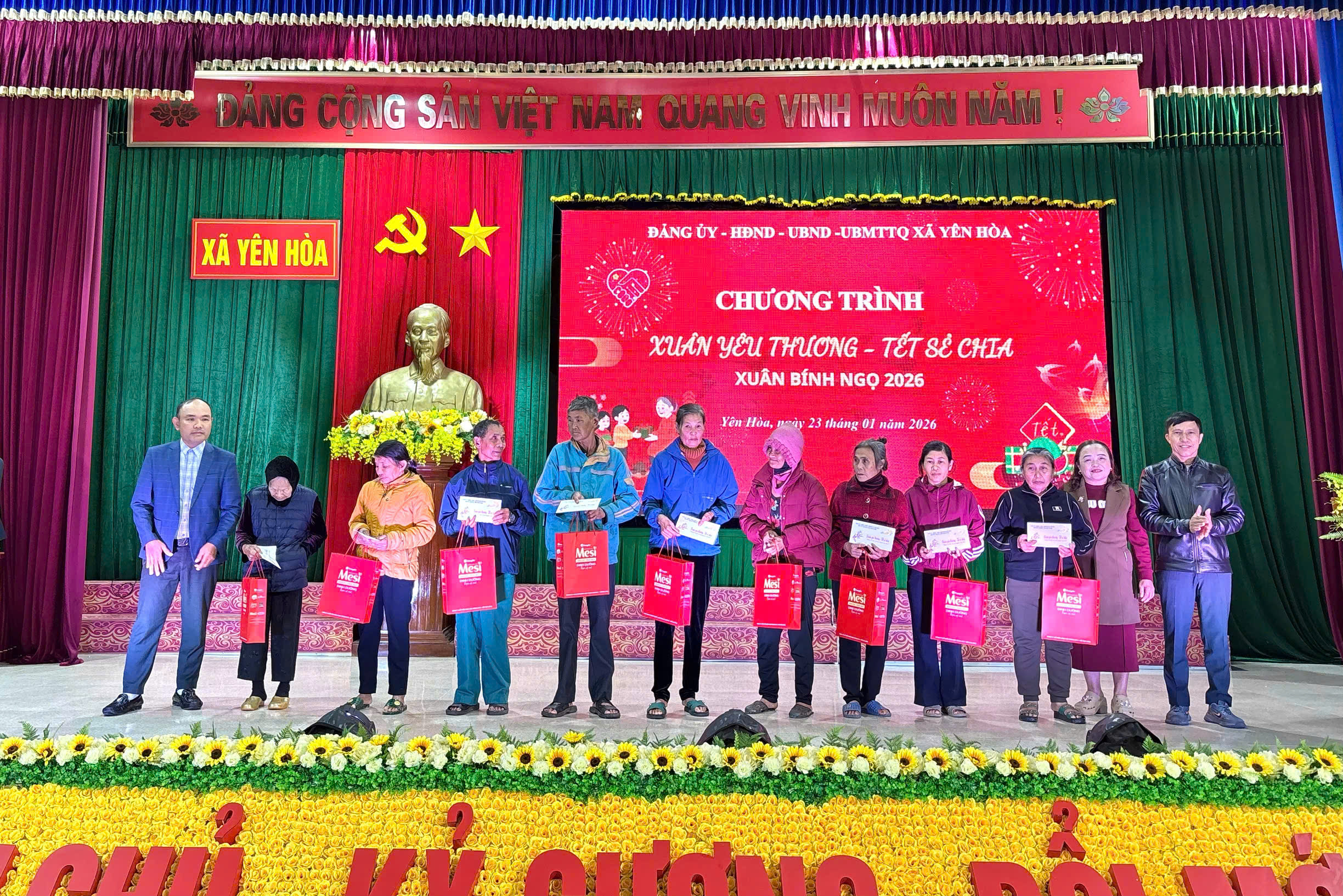 Nhằm kịp thời động viên, hỗ trợ các hộ gia đình có hoàn cảnh khó khăn trên địa bàn nhân dịp Tết Nguyên đán Bính Ngọ năm 2026. Chiều ngày 23/01/2026, xã Yên Hòa, tỉnh Hà Tĩnh tổ chức chương trình “Xuân yêu thương – Tết sẻ chia”.