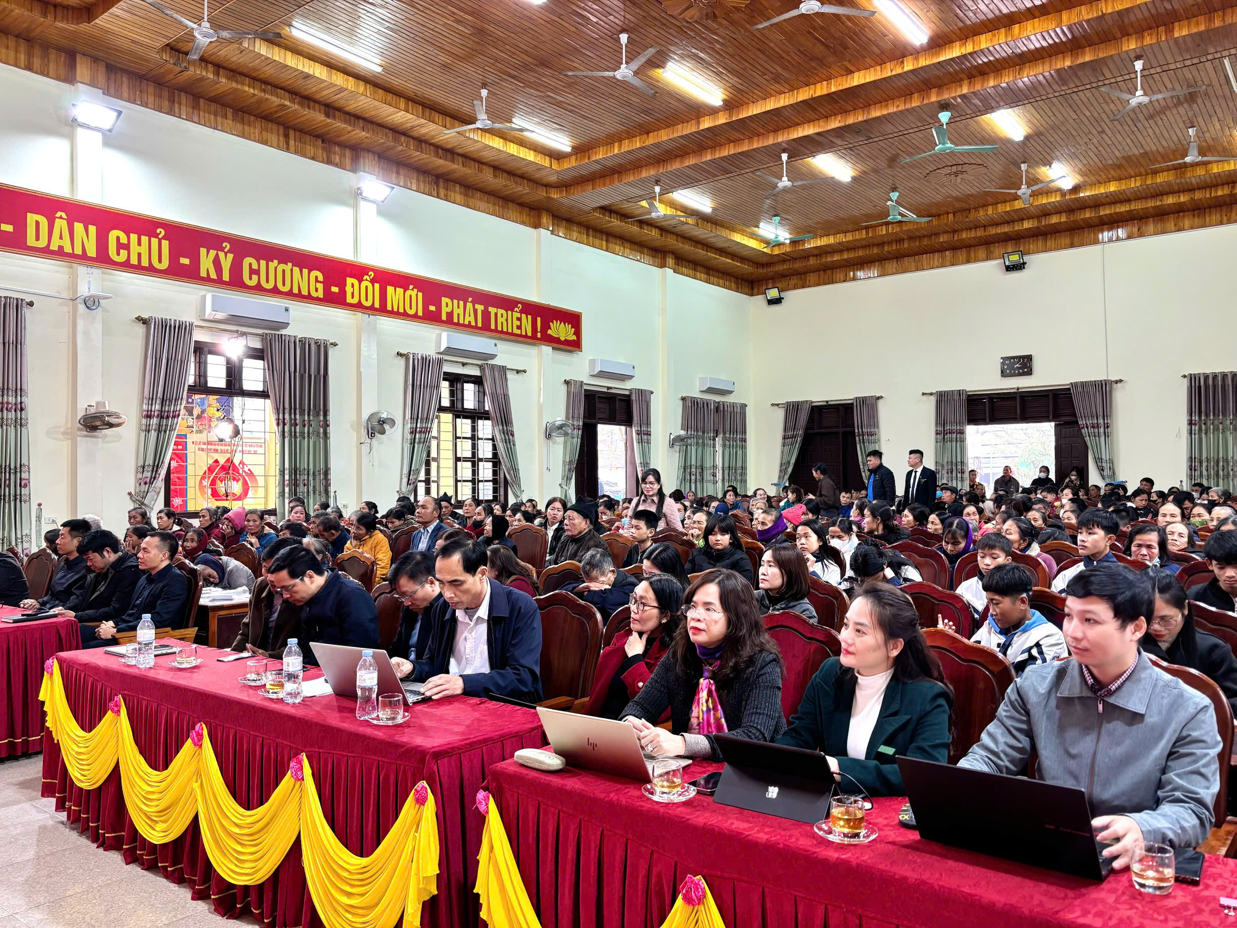 Về tham dự chương trình có Nhà báo Nguyễn Văn Dũng – Trưởng Văn phòng đại diện báo GD&TĐ khu vực Bắc Trung Bộ; đại diện các cơ quan, doanh nghiệp, các nhà hảo tâm. Phía xã có các đồng chí trong Thường trực Đảng ủy; Ủy viên BTV Đảng ủy, BCH Đảng bộ xã; Lãnh đạo HĐND, UBND, Ủy ban MTTQ và các đoàn thể; Thường trực Hội CTĐ – BTXH xã; đại diện các phòng, ban chuyên môn cùng các hộ gia đình được nhận quà.