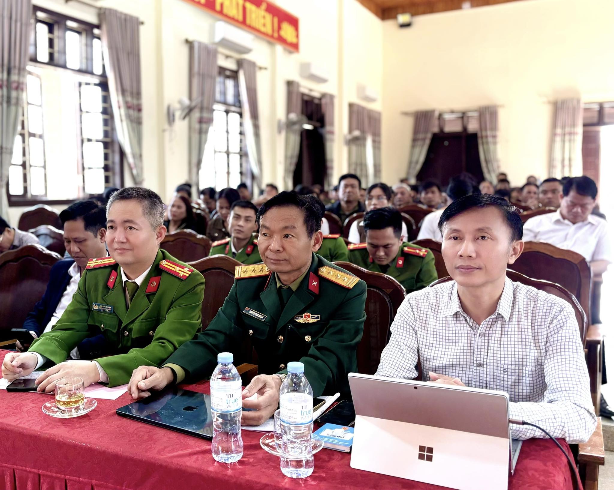Về tham dự hội nghị có đồng chí Thượng tá Bùi Đức Thuận - Phó Trưởng phòng PC 06, Công an tỉnh Hà Tĩnh; đồng chí Thượng tá Nguyễn Xuân Quảng - Phó chính ủy Ban CHQS Khu vực 3 Kỳ Anh, cùng các đồng chí trong đoàn công tác. Phía xã có đồng chí Trần Đình Hải - Bí thư Đảng ủy, Chủ tịch HĐND xã; đồng chí Trần Quang Trung - Phó Bí thư Thường trực Đảng ủy; các đồng chí trong BTV Đảng ủy, BCH Đảng bộ xã; Lãnh đạo các phòng, ban, ngành, cơ quan, đơn vị; các đồng chí cán bộ, chiến sỹ Đồn Biên phòng Thiên Cầm, Công an xã cùng Bí thư, thôn trưởng và tổ An ninh trật tự cơ sở tại các thôn cùng dự.
